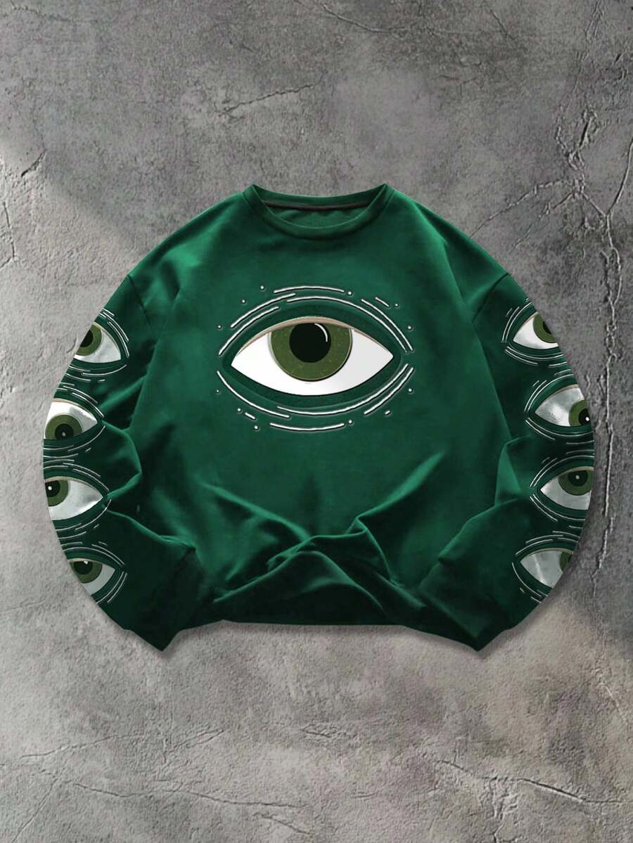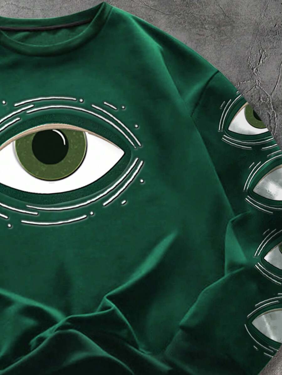 Street Life Felpa girocollo a maniche lunghe con stampa occhi, autunno/inverno, da uomo