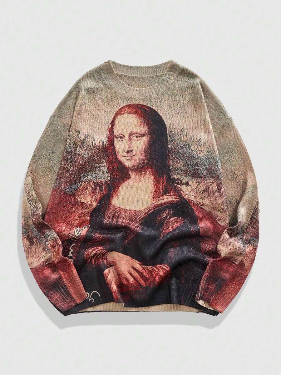 Street Life Maglione girocollo lavorato a maglia con motivo Monna Lisa, casual di moda da uomo, autunno inverno