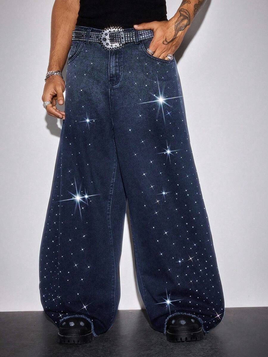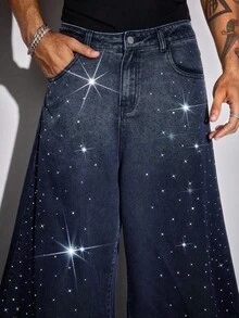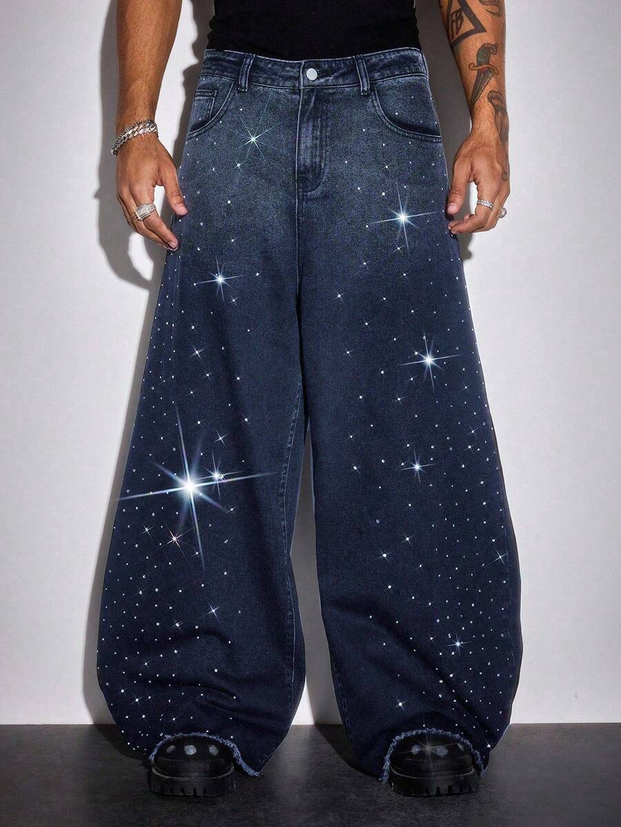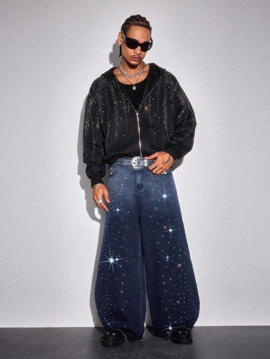 Street Life Jeans da uomo alla moda, stile pendolare, con strass e sfumatura degradè