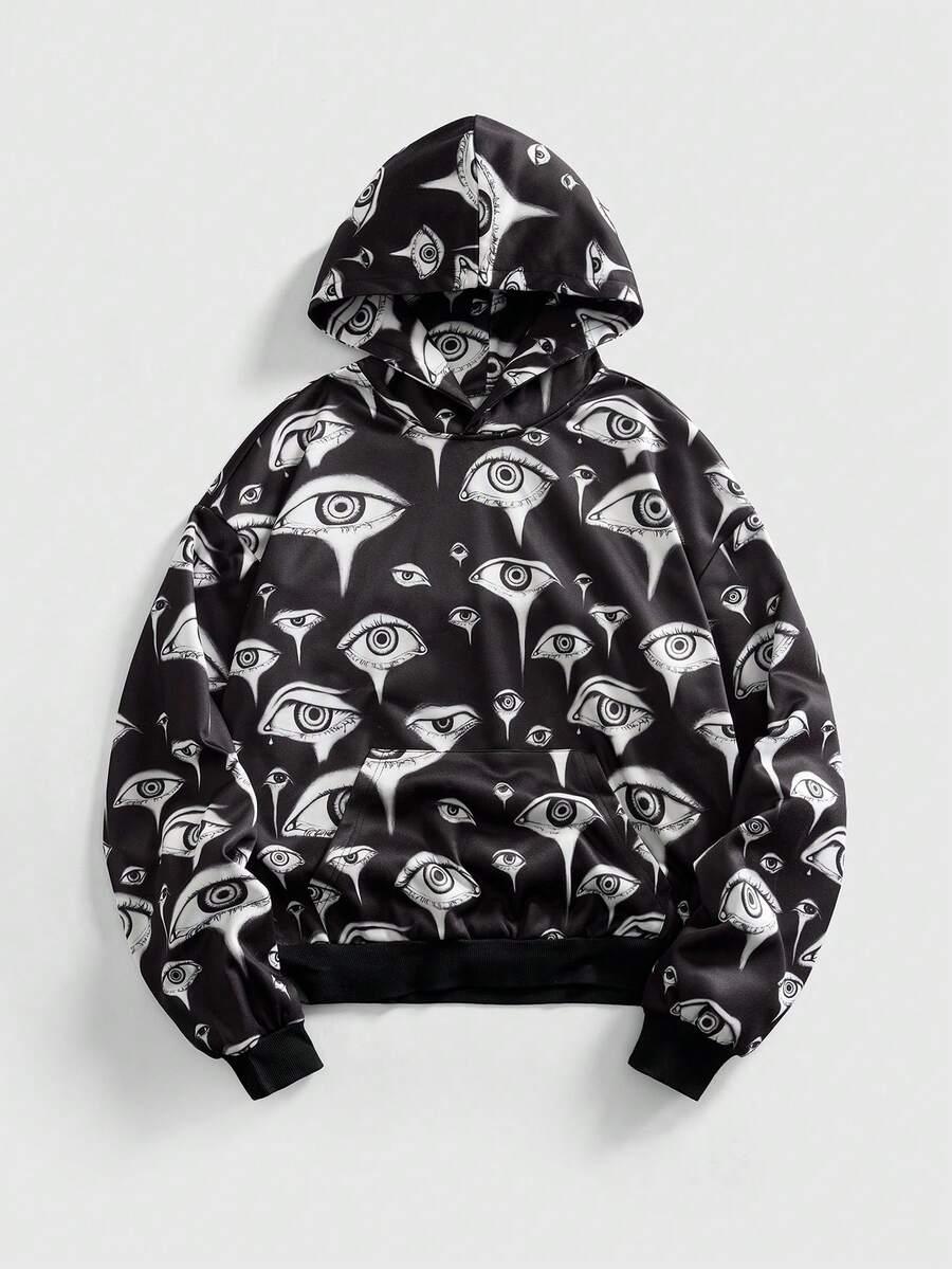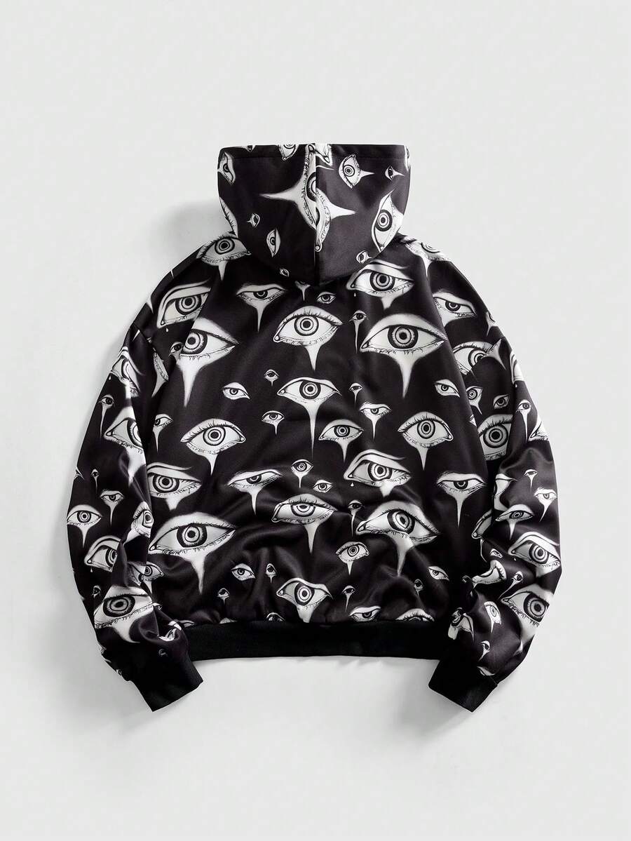 Street Life Felpa con cappuccio da uomo con stampa occhi scuri di moda