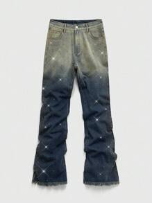 Street Life Jeans di moda da uomo con tasche in denim con strass e orlo sfrangiato