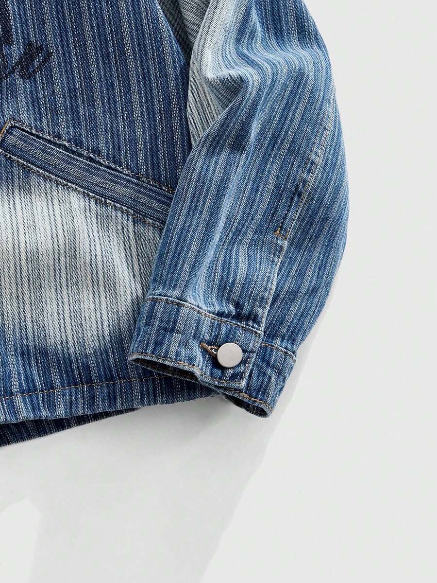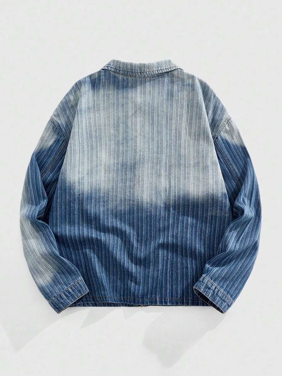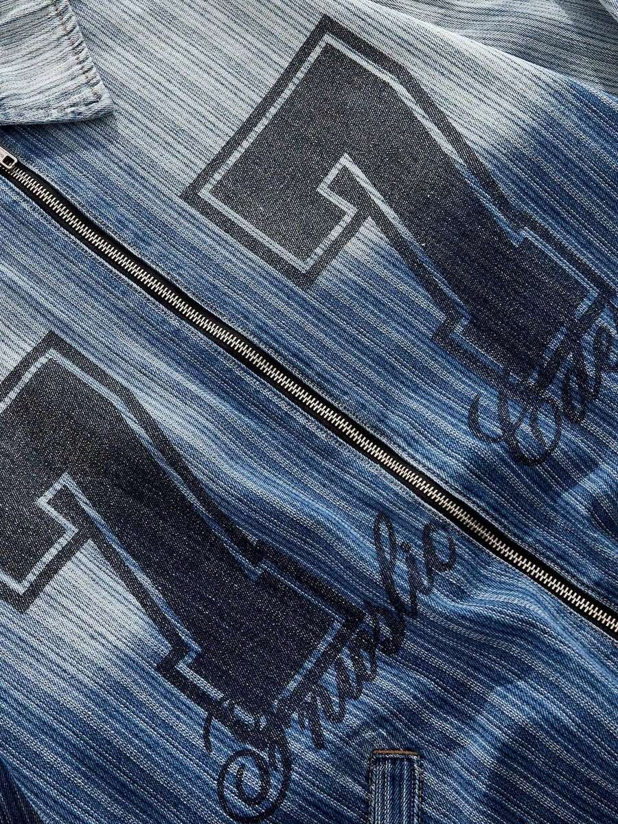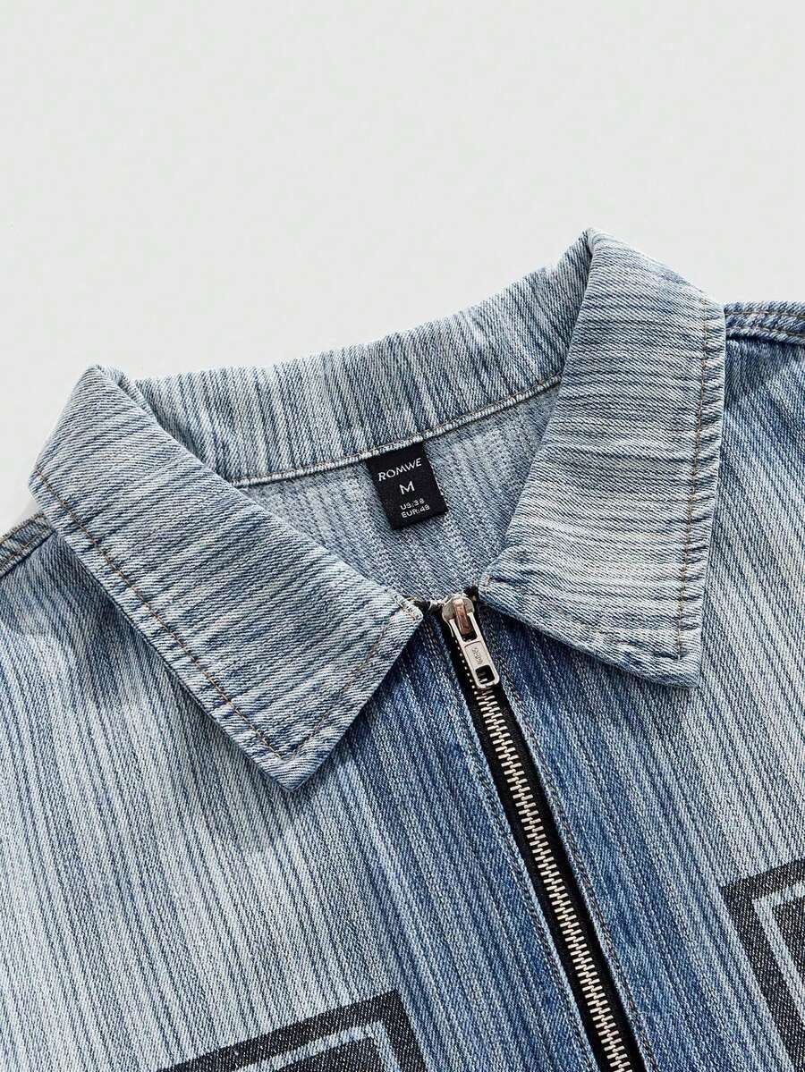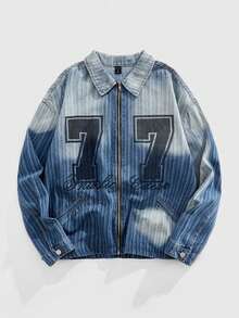 Street Life Giacca di jeans casual da uomo con chiusura lampo, stile urban, lavaggio sfumato, con stampa numerica e grafica, adatta per primavera e autunno