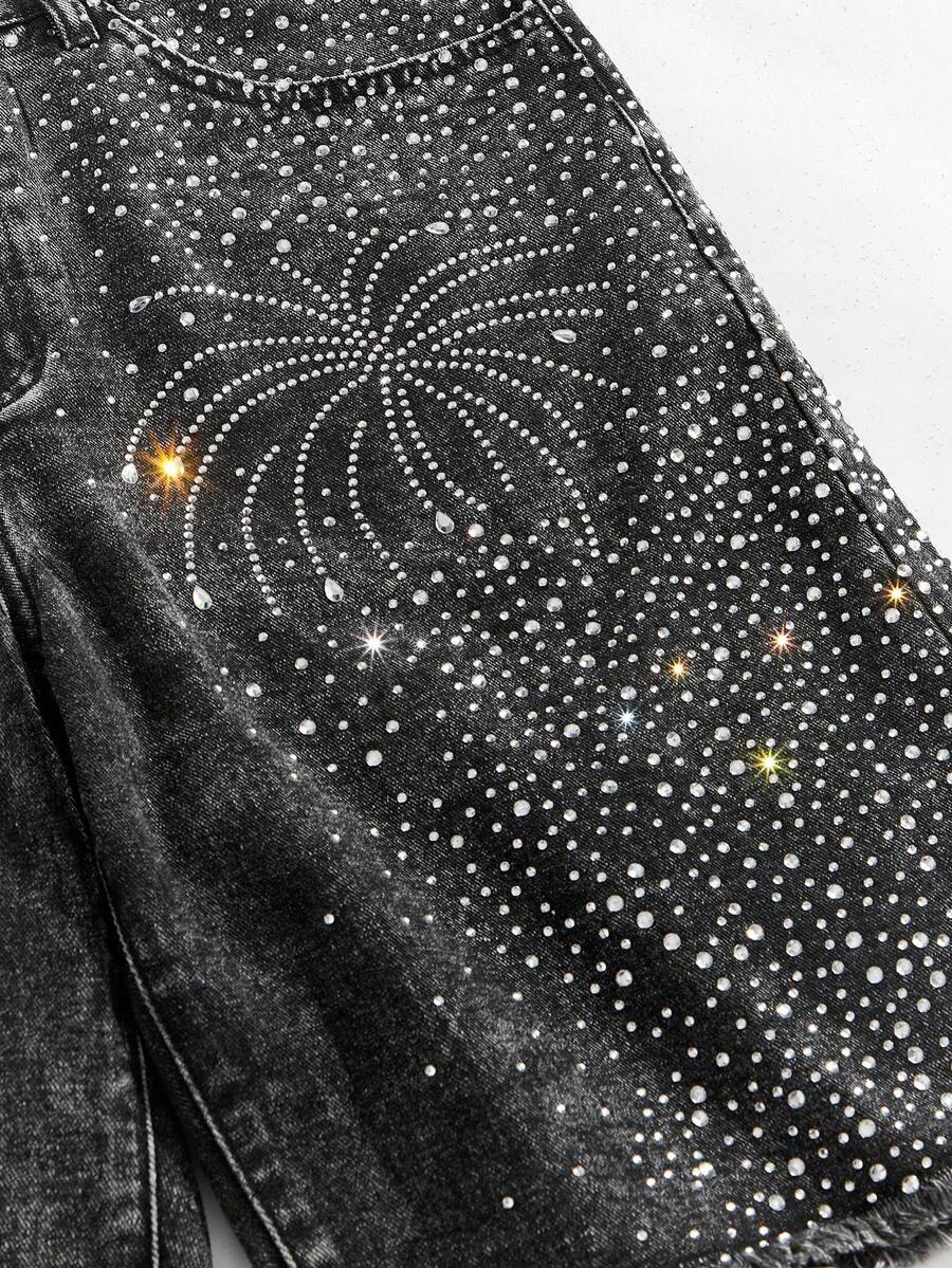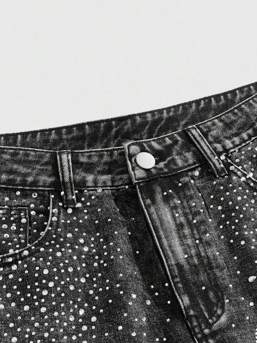 Street Life Pantaloncini di jeans da uomo alla moda, lavaggio ad acqua, decorati con strass