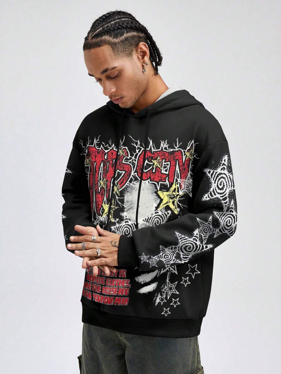 Street Life Felpa con cappuccio di moda da uomo con grafica a figura e slogan, autunno/inverno