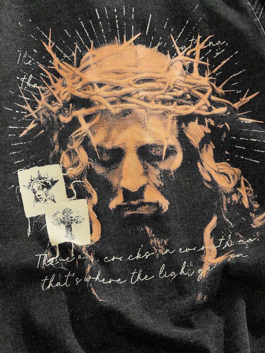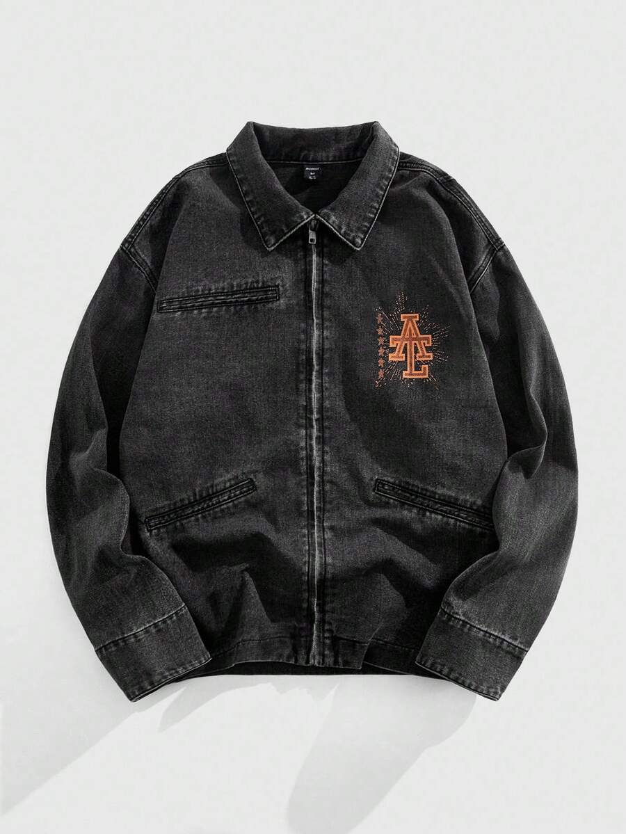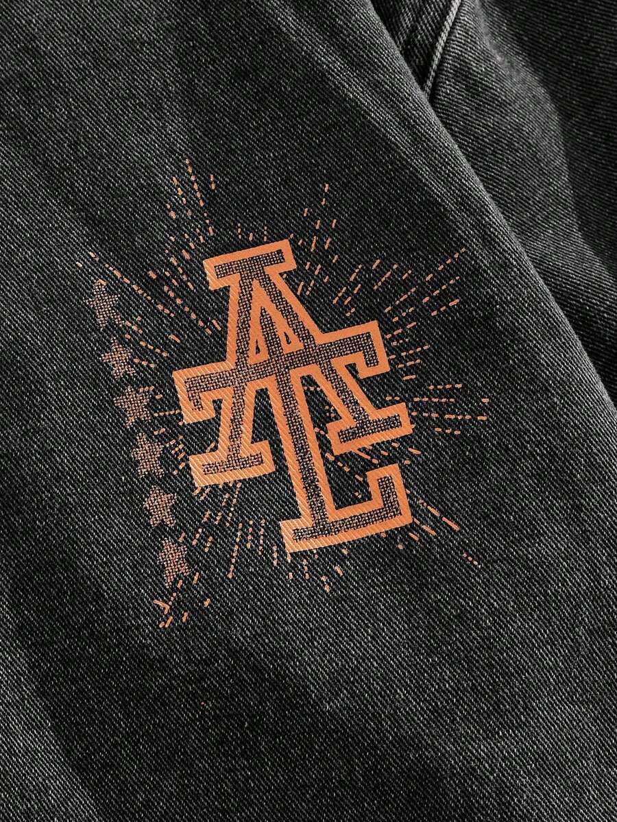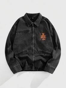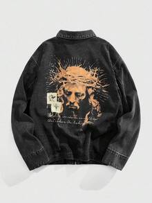 Street Life Giacca di jeans con stampa alla moda a maniche lunghe da uomo