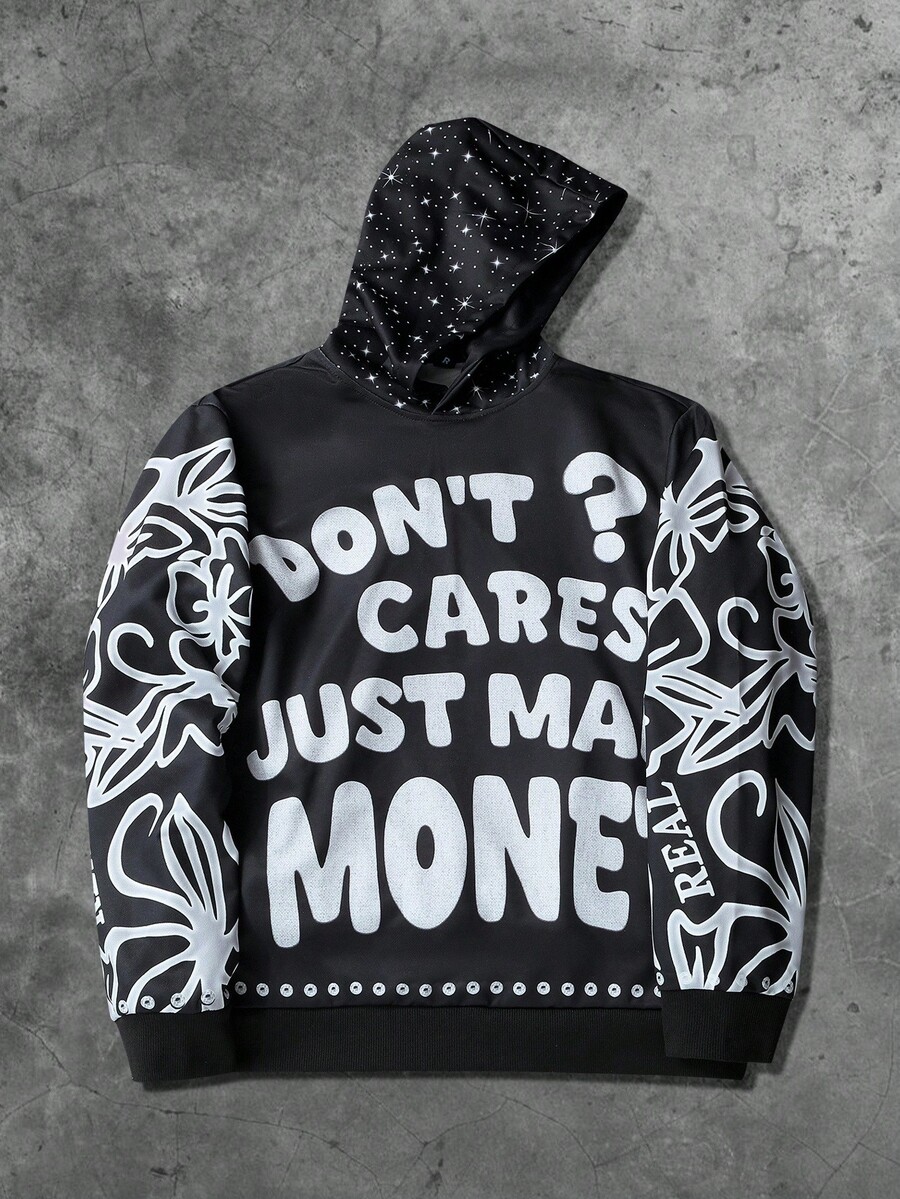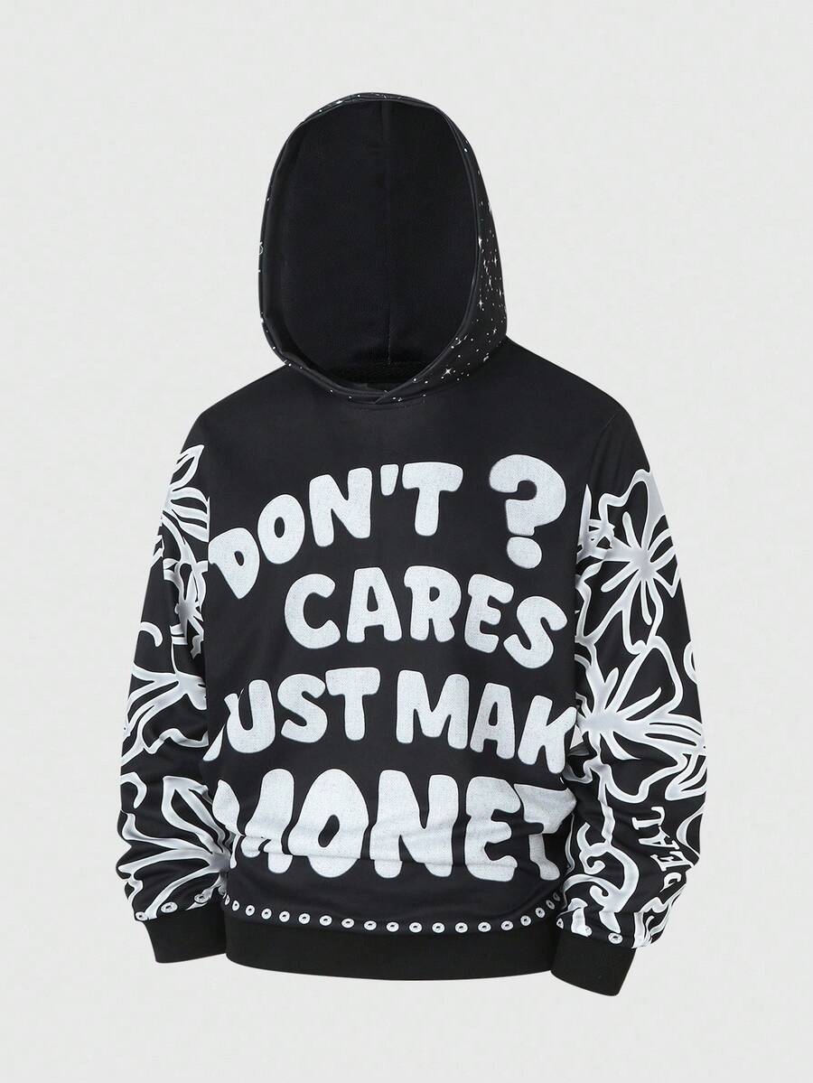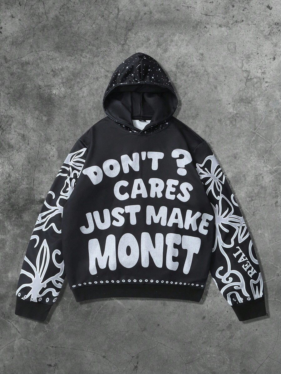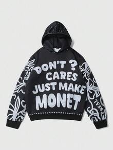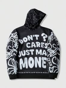 Street Life Felpa con cappuccio da uomo alla moda con stampa slogan, autunnale