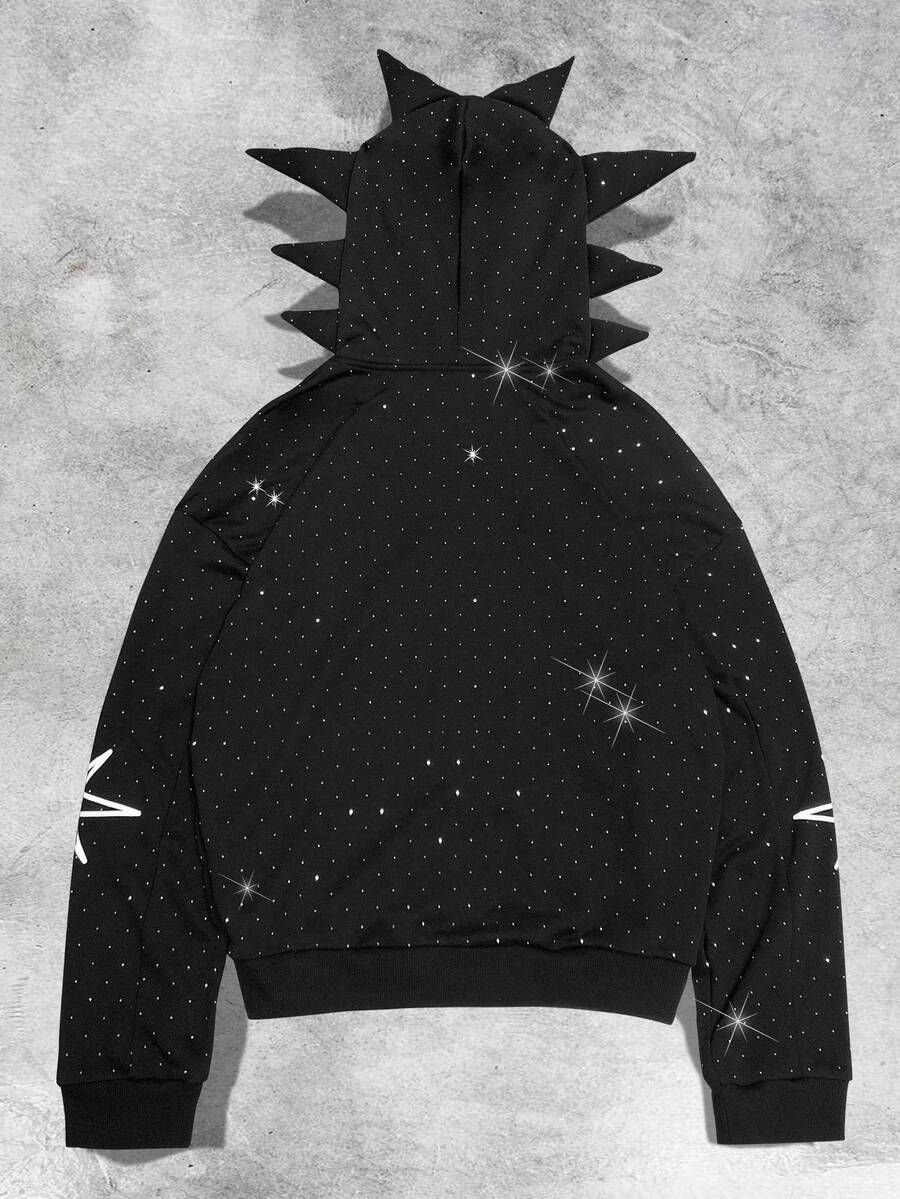 Street Life Felpa con cappuccio da uomo alla moda con diamanti scintillanti e motivo a corna, autunnale