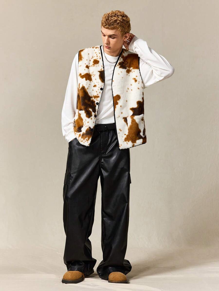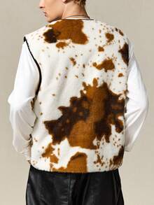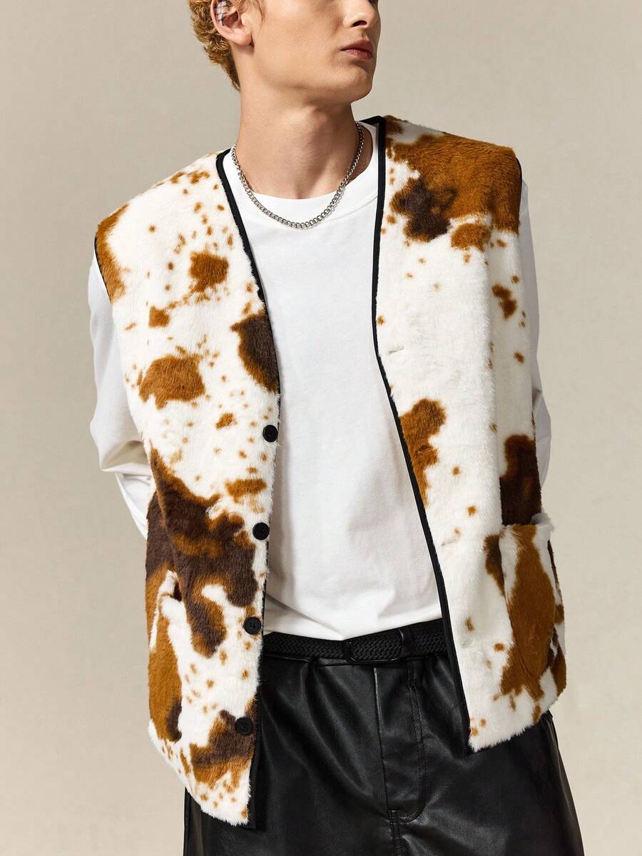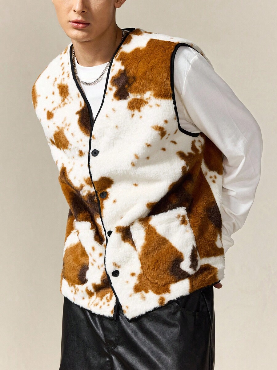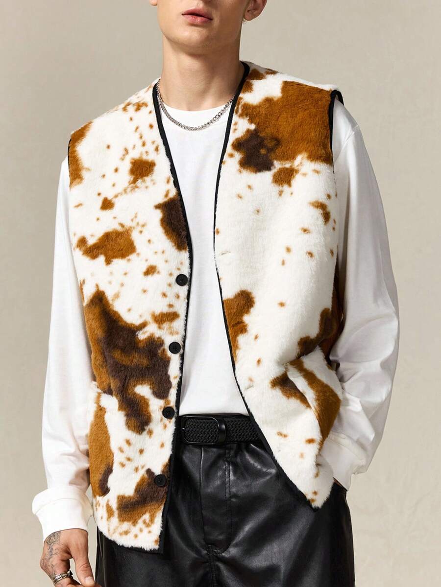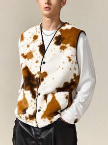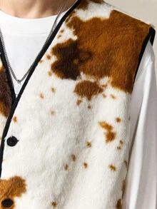 Street Life Gilet casual alla moda da uomo in stile western cowboy, con stampa di mucca e chiusura a bottoni, adatto per l'autunno/inverno