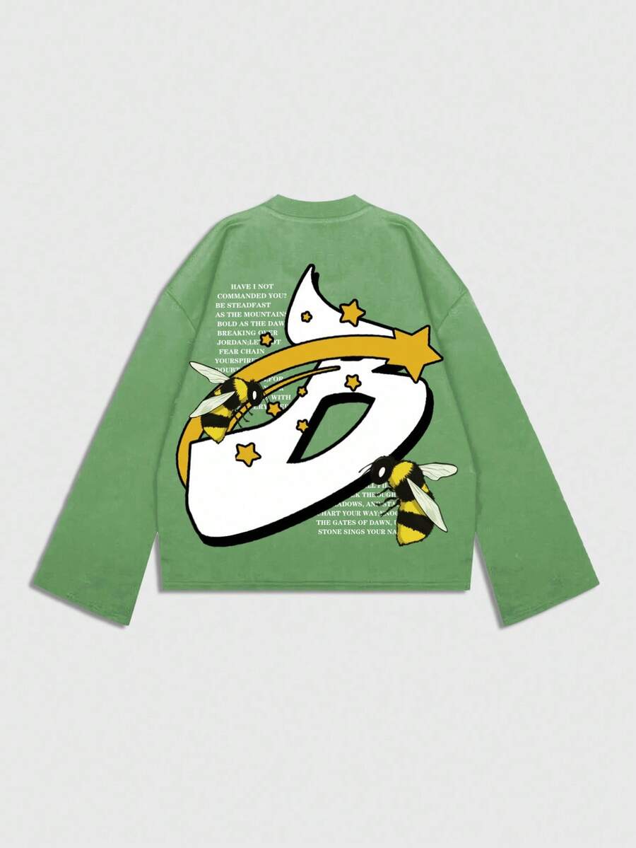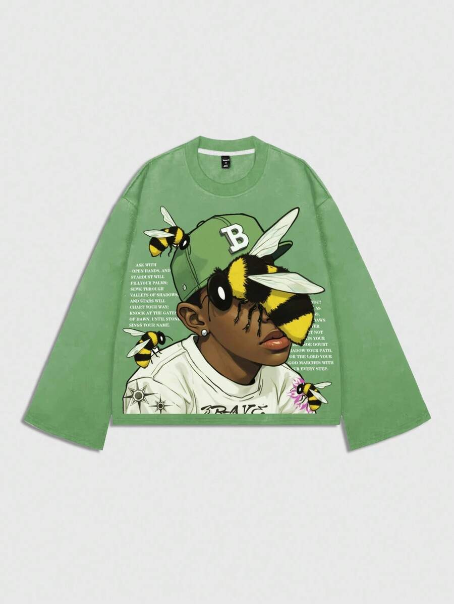 Street Life Maglietta a maniche lunghe da uomo con stampa a figura, vestibilità ampia e corta, adatta per l'autunno