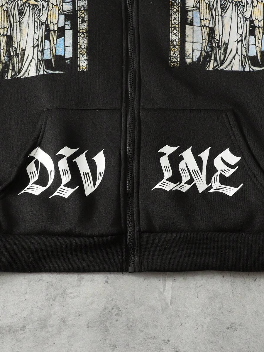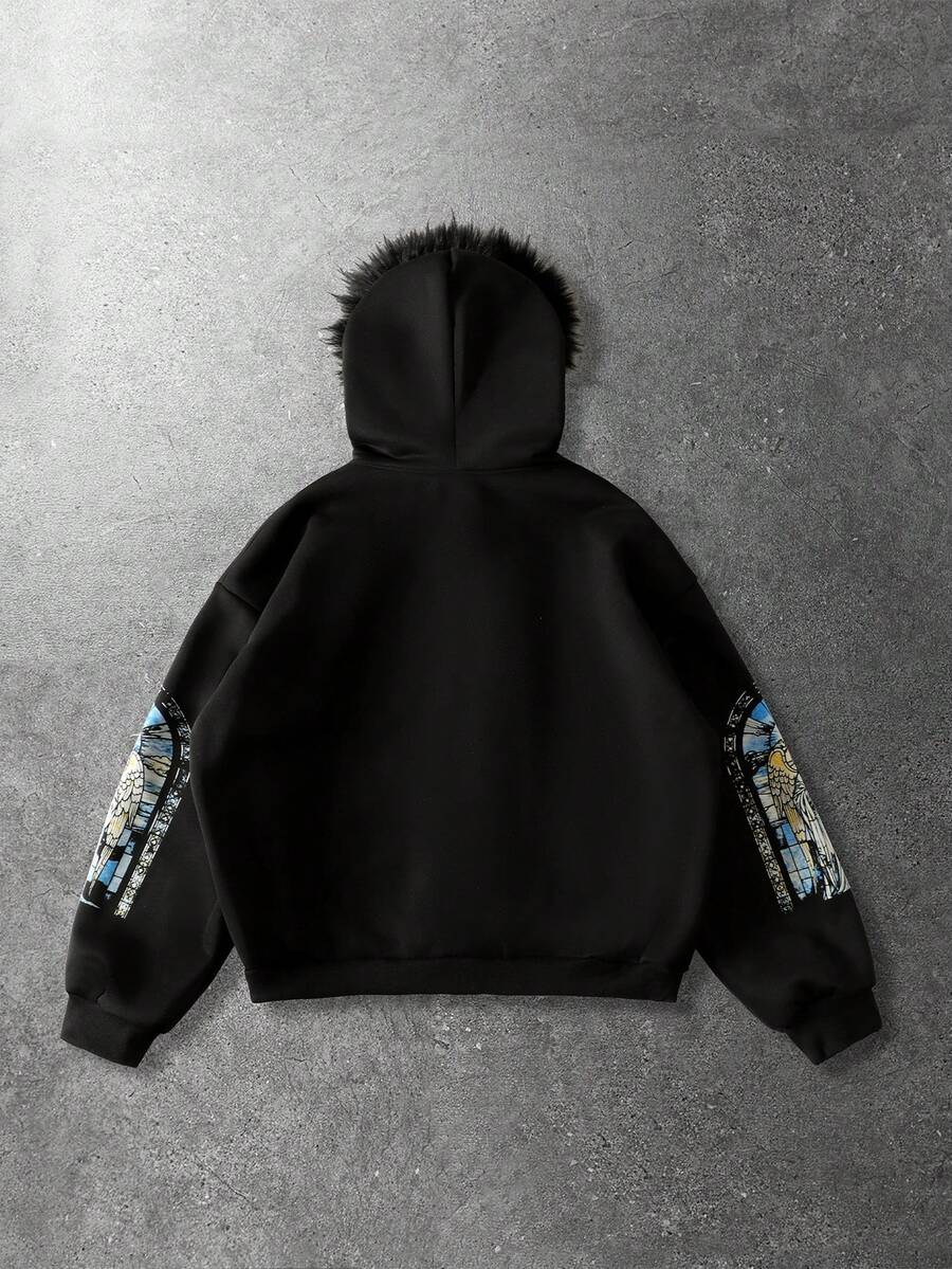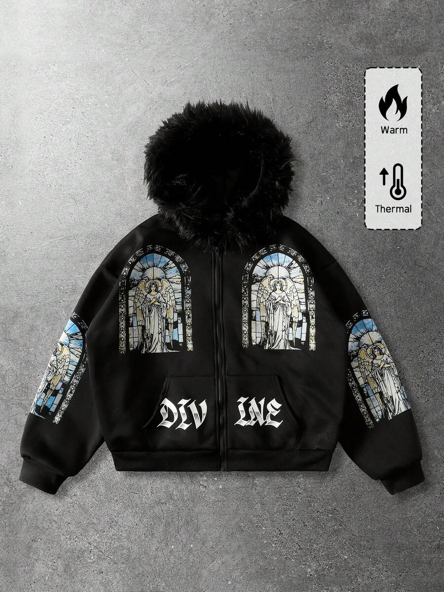 Street Life Felpa con cappuccio e chiusura lampo uomo, con stampa di lettere, colletto in pile, vestibilità ampia