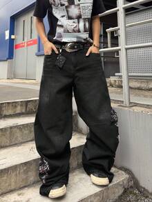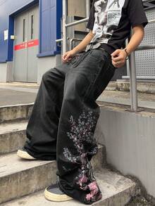 Street Life Jeans ampi con ricamo floreale da uomo