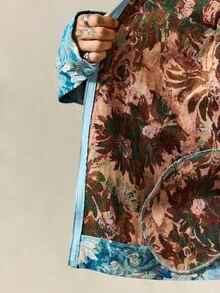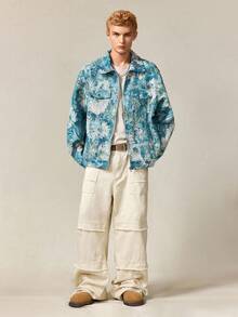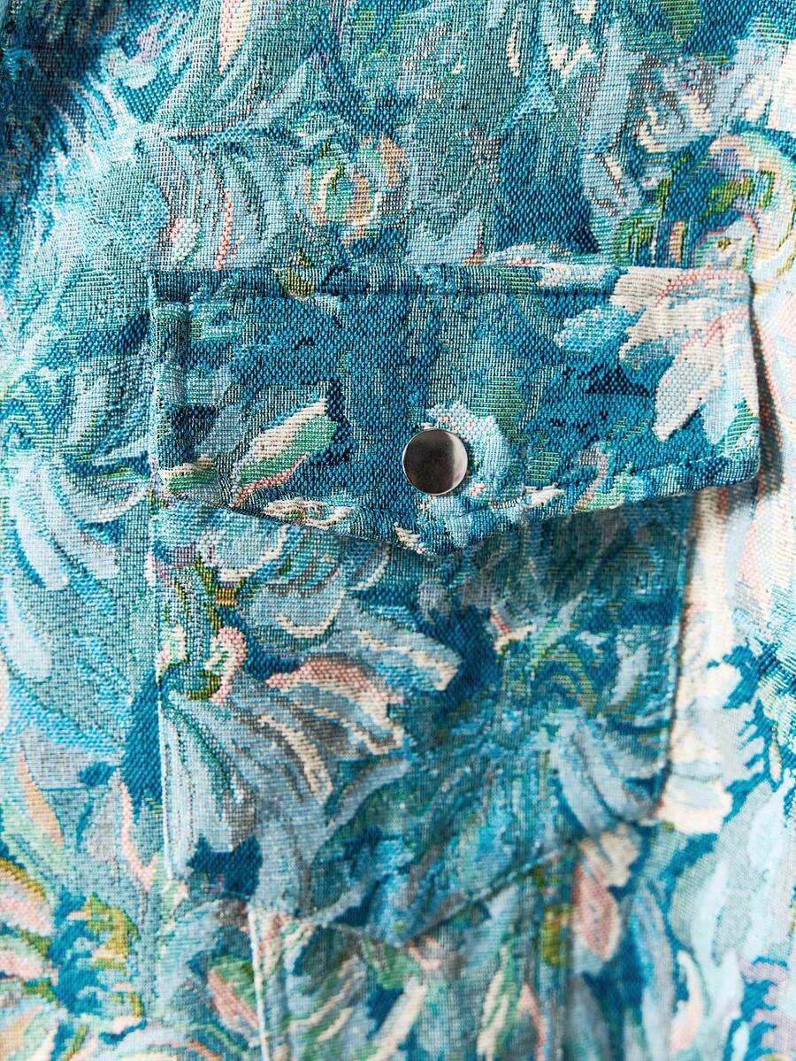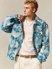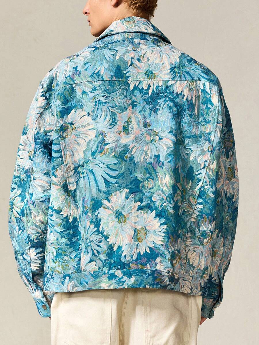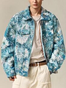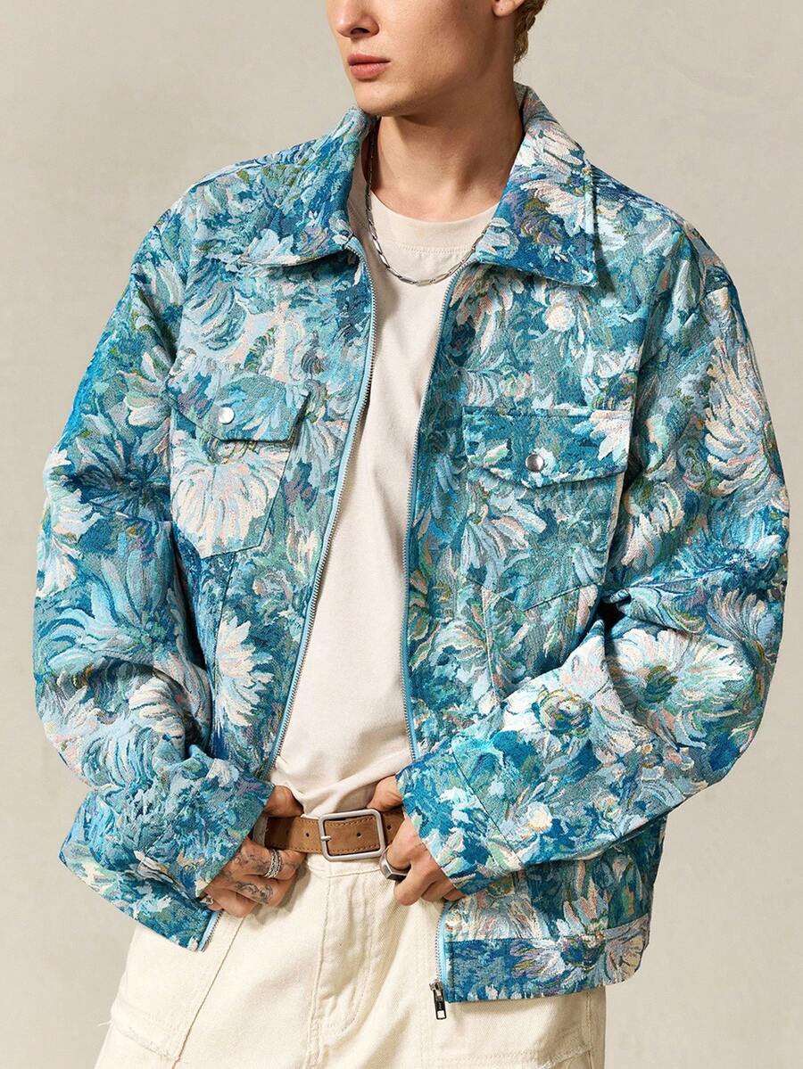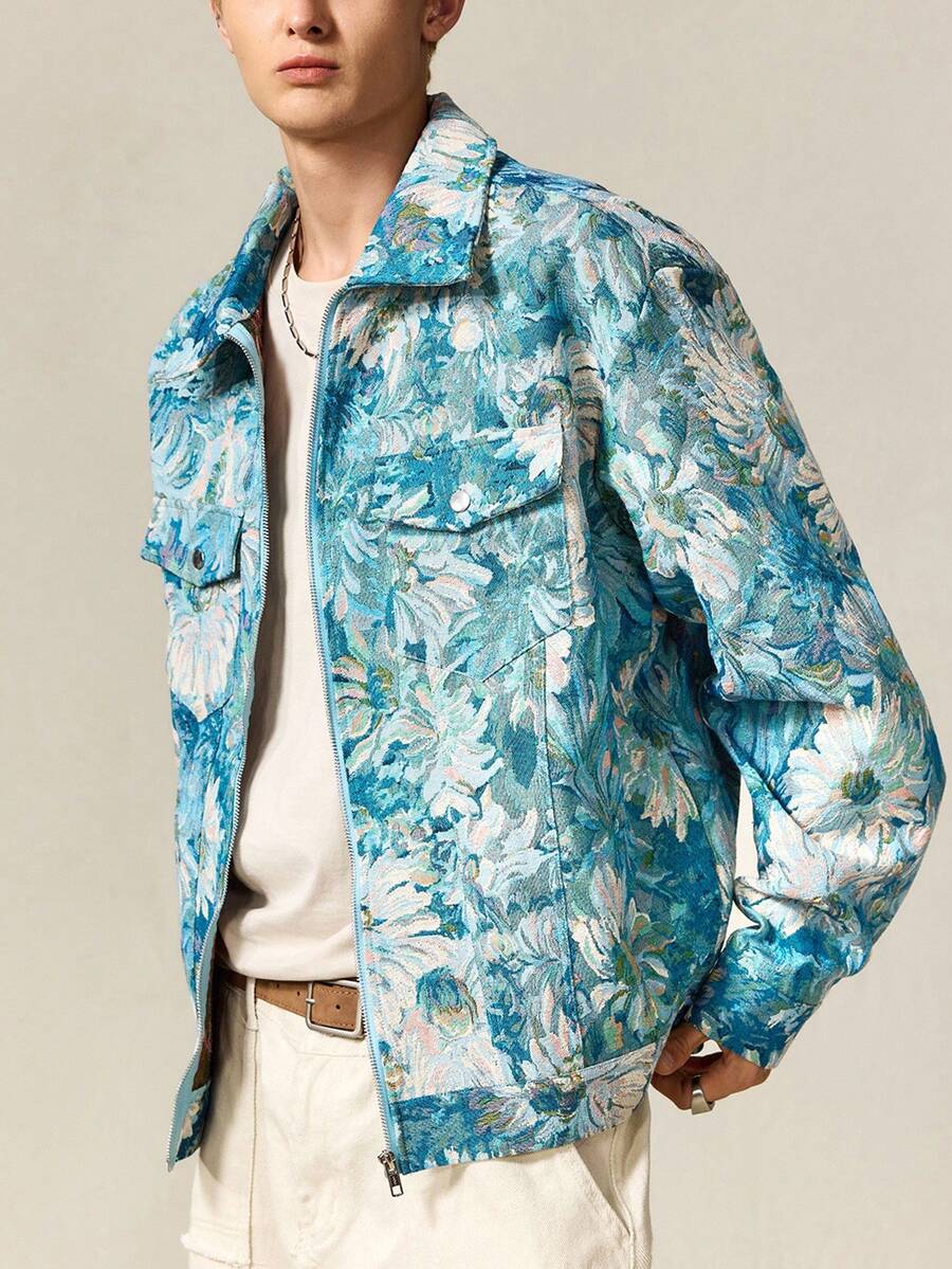 Street Life Giacca casual da uomo con colletto alla coreana, manica lunga, chiusura lampo, motivo floreale jacquard, autunnale