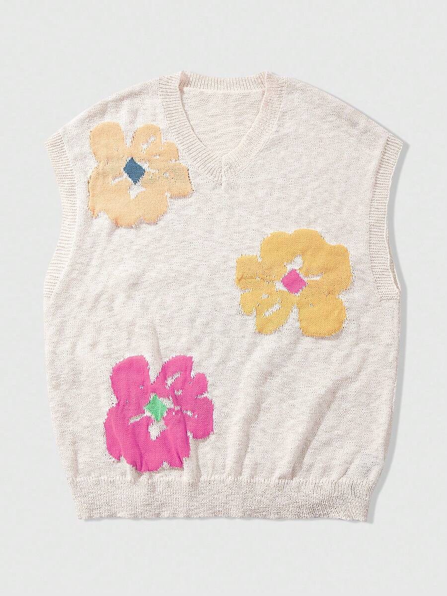 Street Life Gilet casual in maglia larga con scollo a V e motivo floreale jacquard da uomo