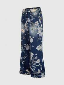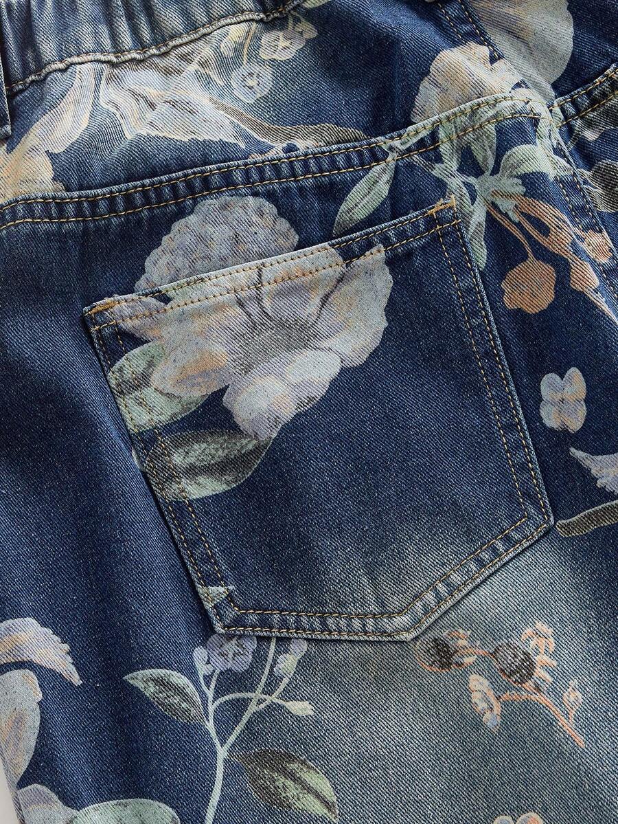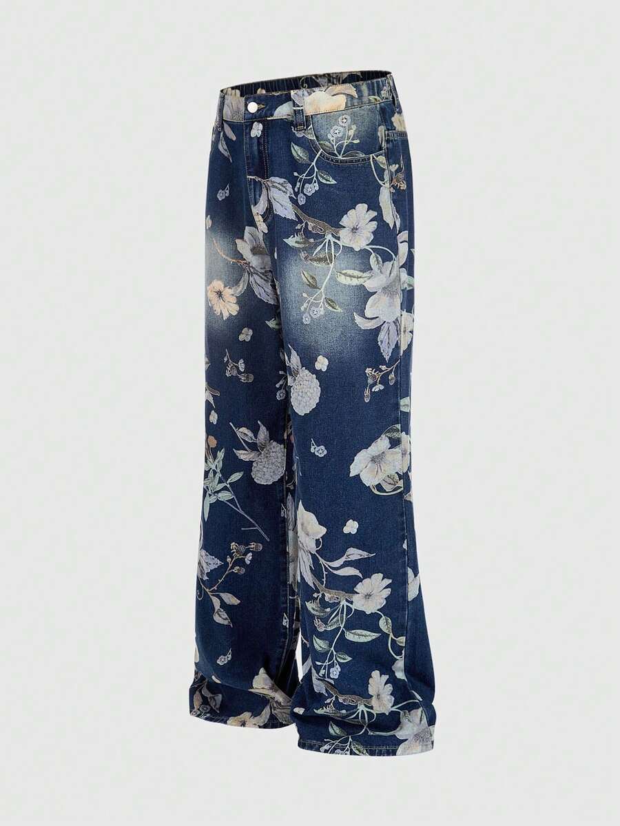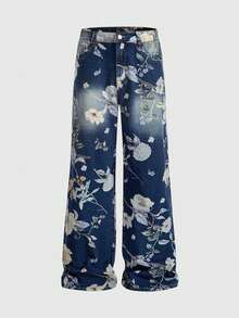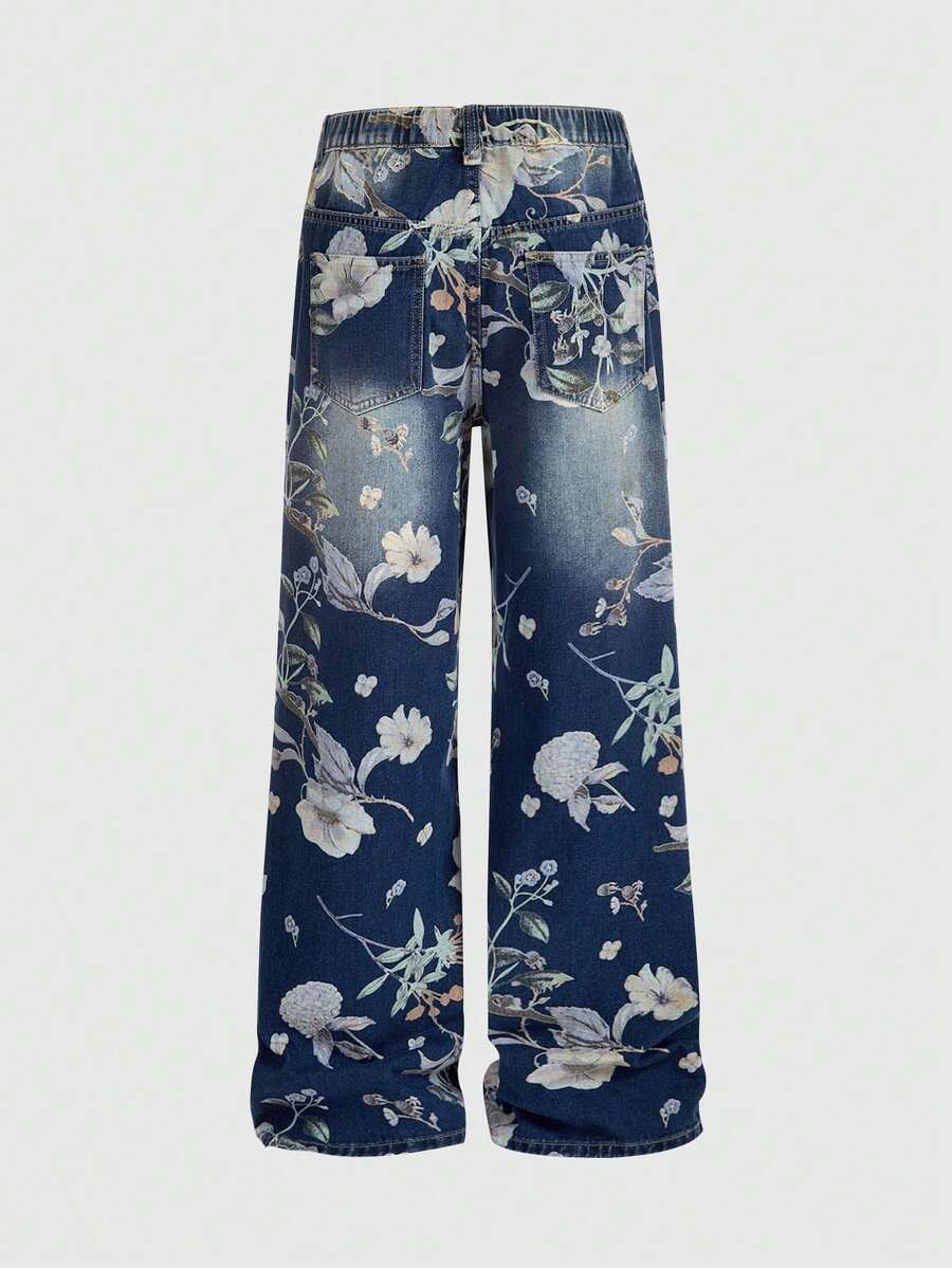 Street Life Jeans casual larghi con gamba ampia e stampa floreale con tasche per uomo