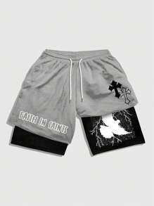 Street Life Pantaloncini casual da uomo con stampa, a doppio strato, con lacci in vita, adatti per uso quotidiano