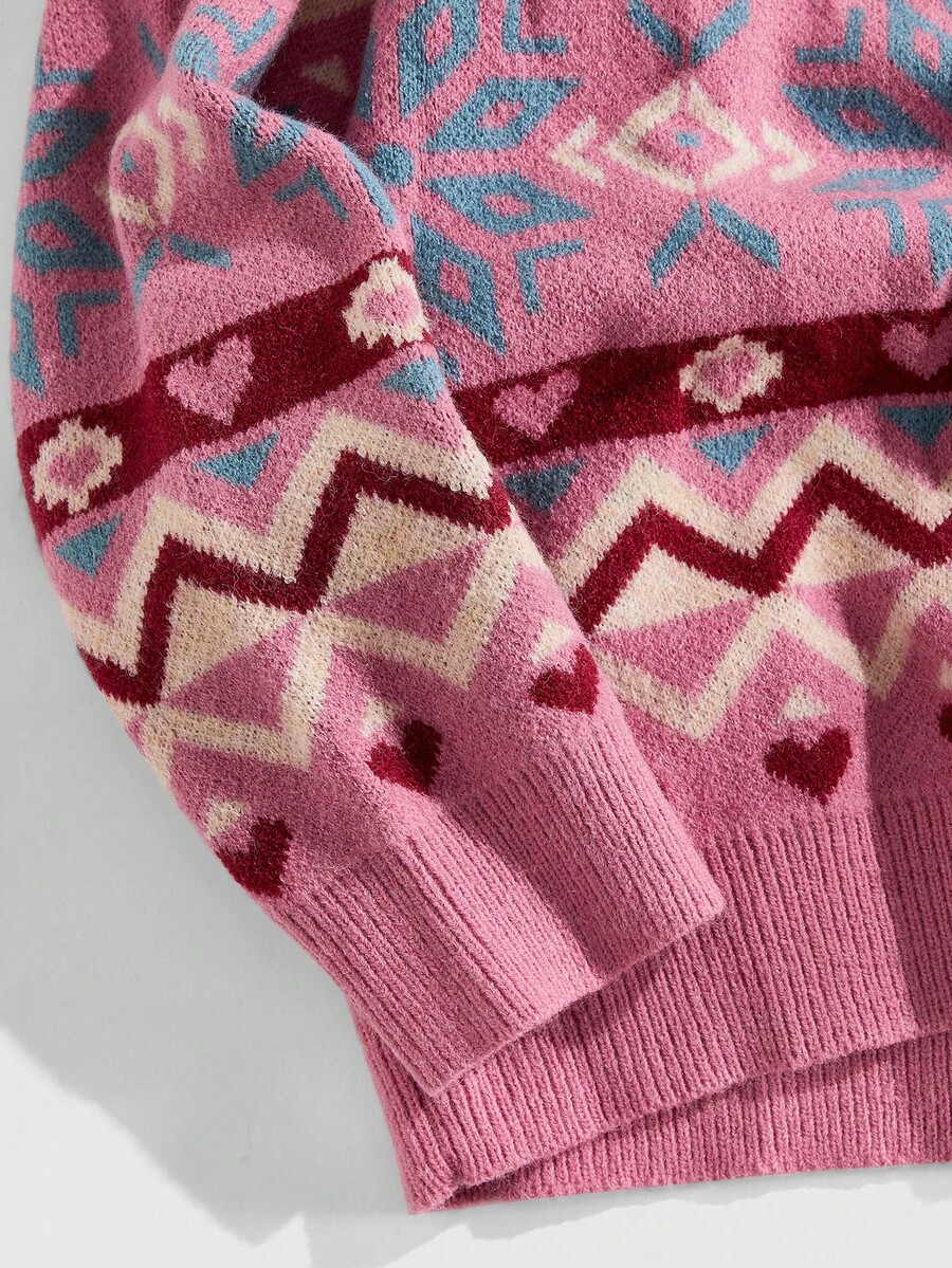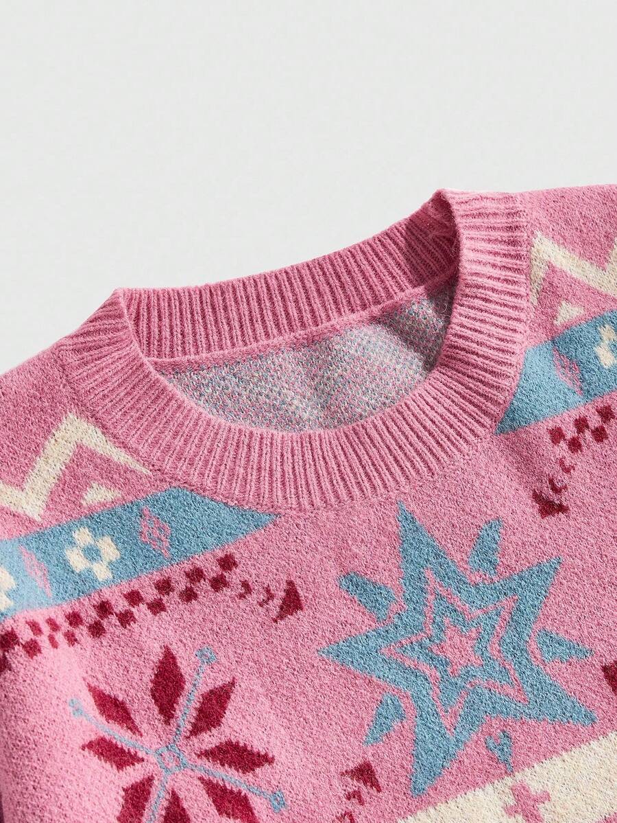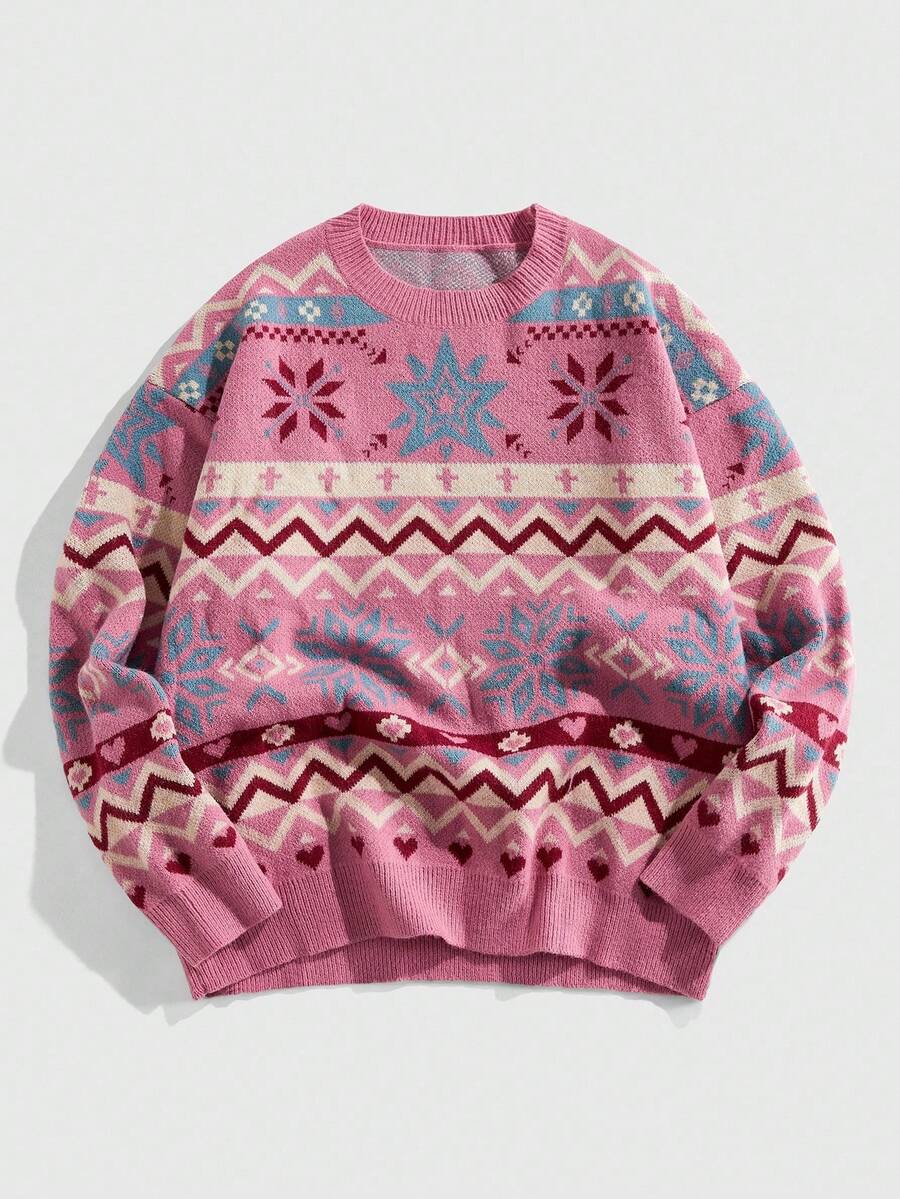Street Life Maglione casual da uomo con collo a giro, motivo geometrico jacquard, autunnale