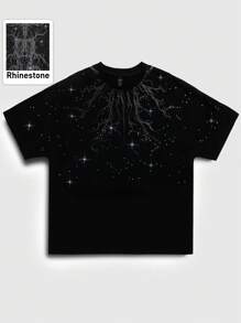 Street Life Maglietta a maniche corte da uomo con stampa di strass in stile gotico, adatta per uso quotidiano, rave, Ognissanti, stile anni 2000