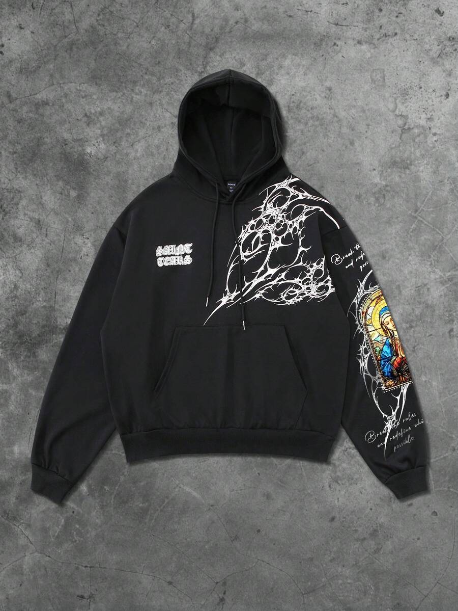 Street Life Felpa con cappuccio da uomo con stampa gotica, felpa con grafica adatta per uso quotidiano, autunno/inverno