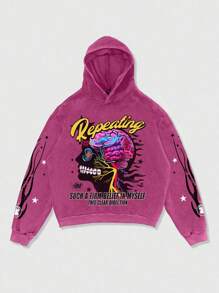 Street Life Felpa con cappuccio oversize, lavata, con stampa grafica, effetto consumato, stile casual di strada, da uomo