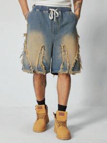 Street Life Pantaloncini di jeans casual da uomo con tasche, con bordo sfilacciato e con lacci davanti