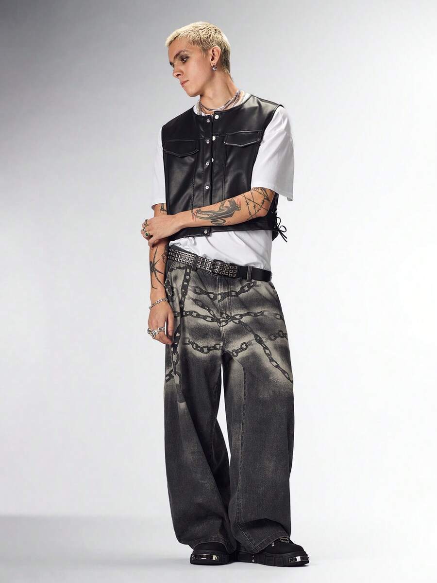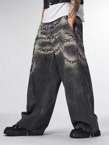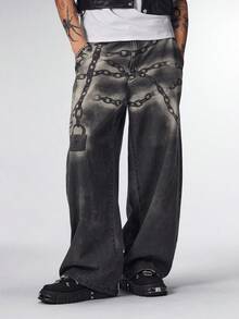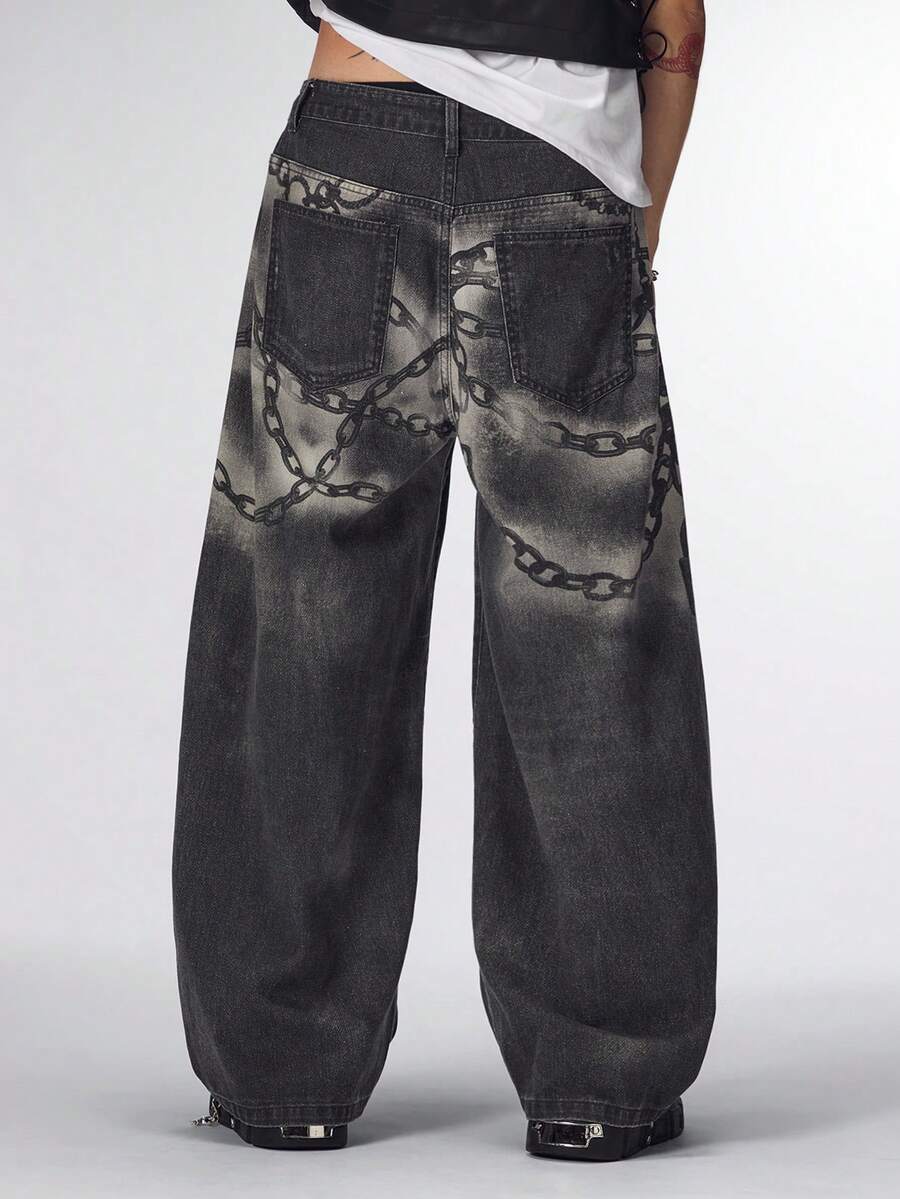 Street Life Jeans casual a vita alta con passanti, taglio dritto e ampio, con stampa digitale curva