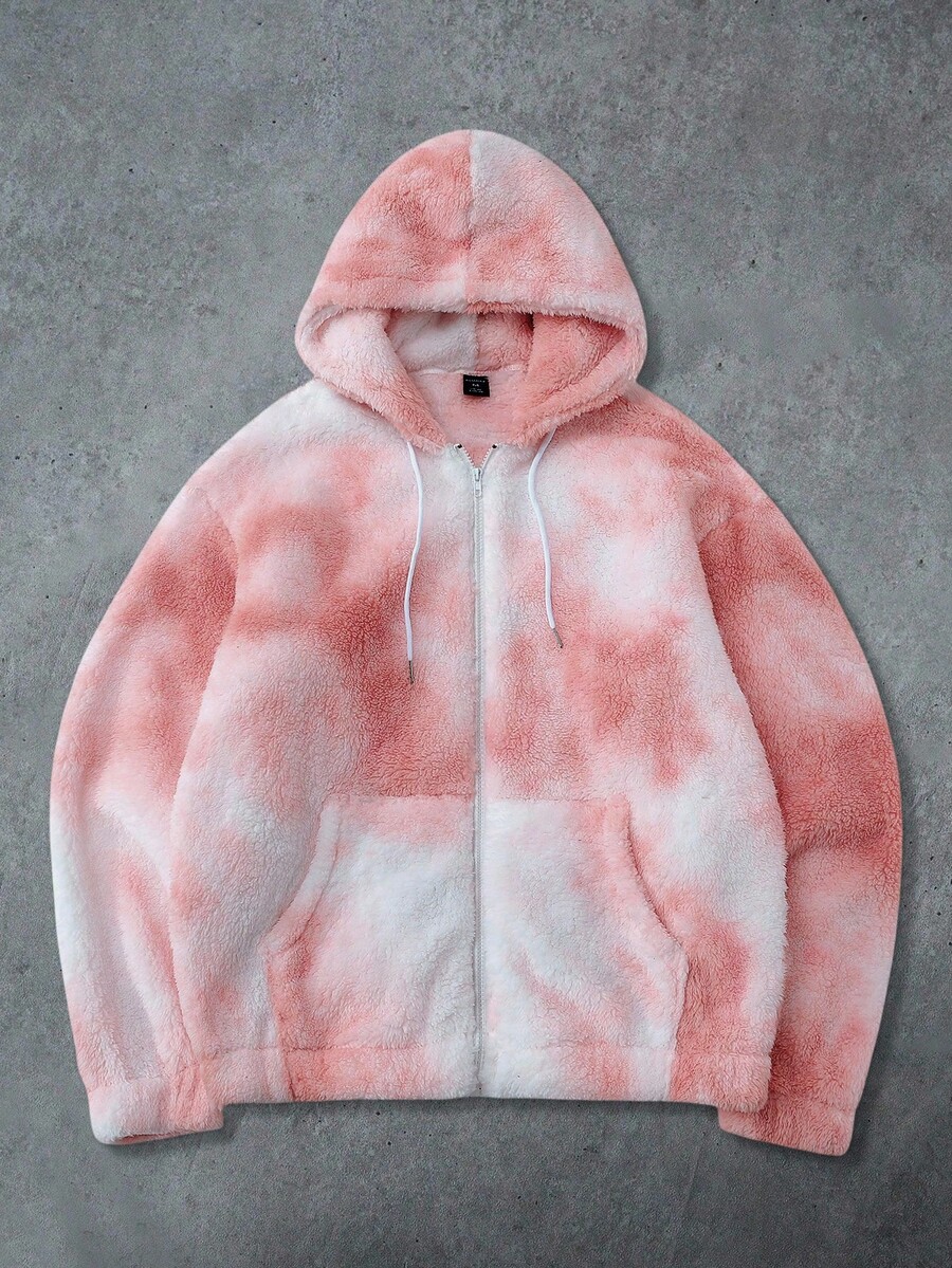 Street Life Felpa con cappuccio da uomo, felpa con cappuccio in finta pelliccia con effetto tie-dye stile americano, autunno inverno