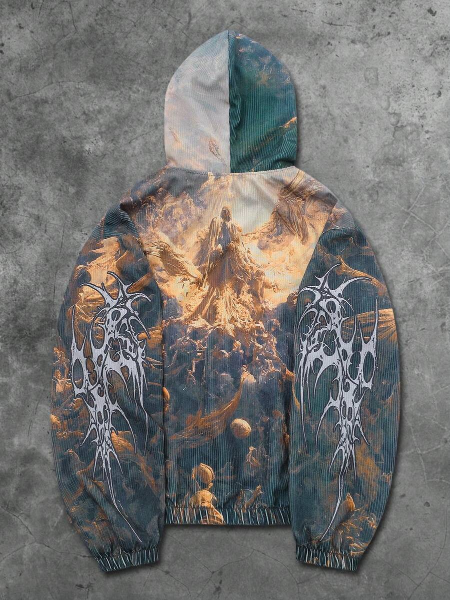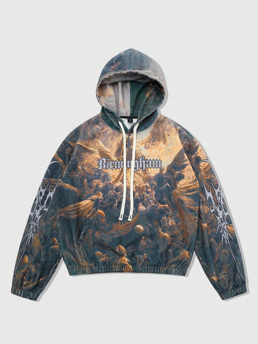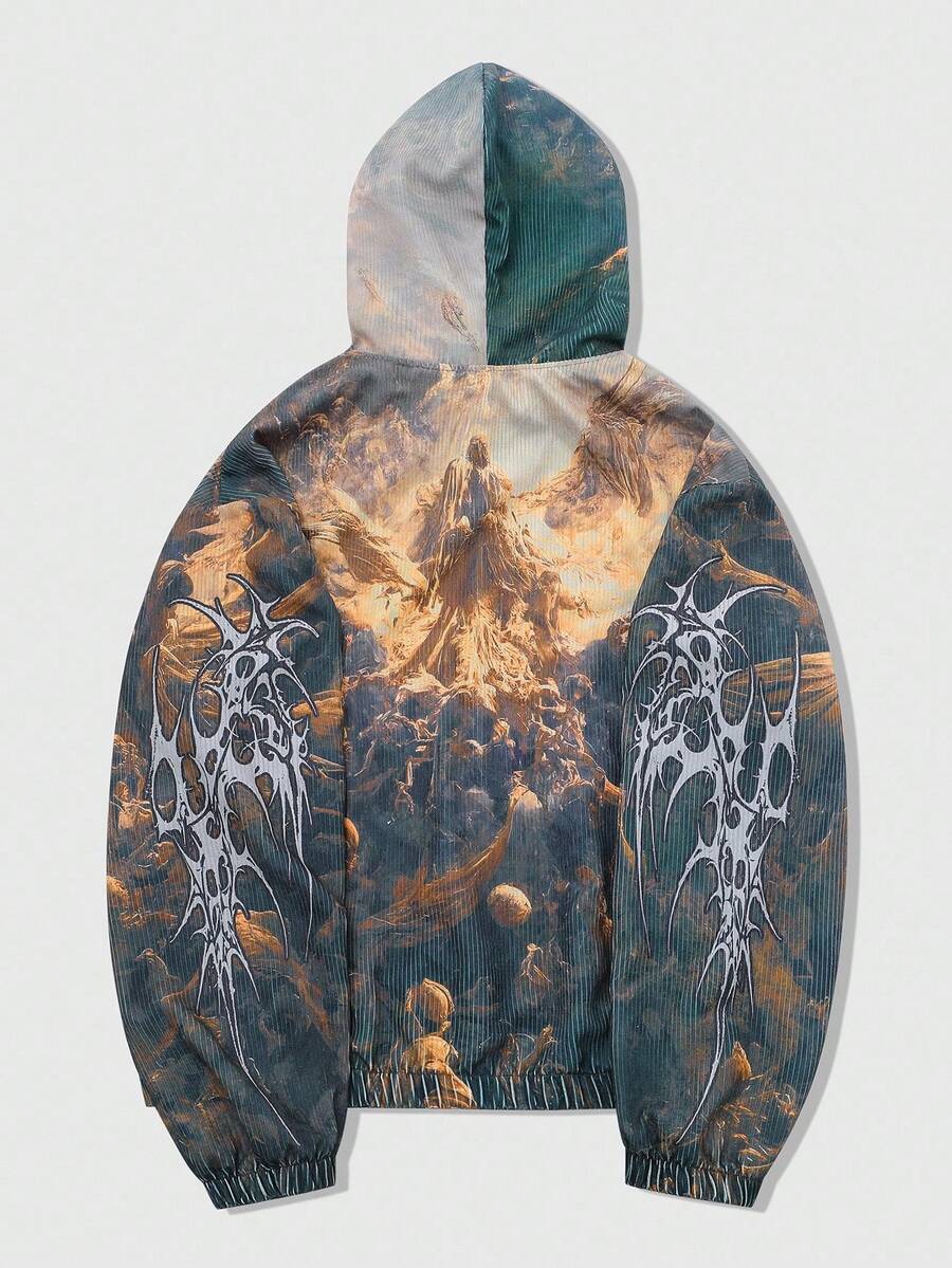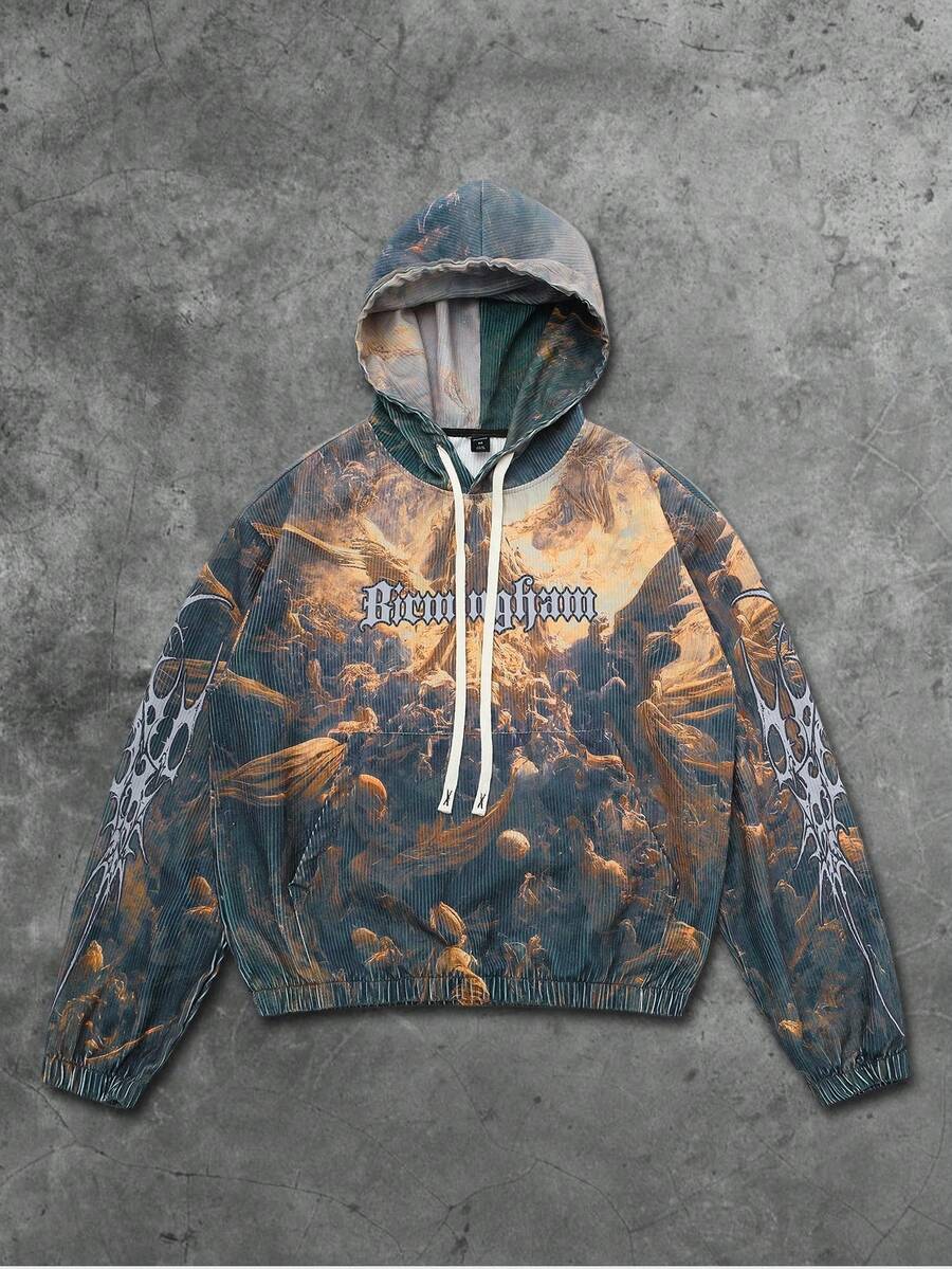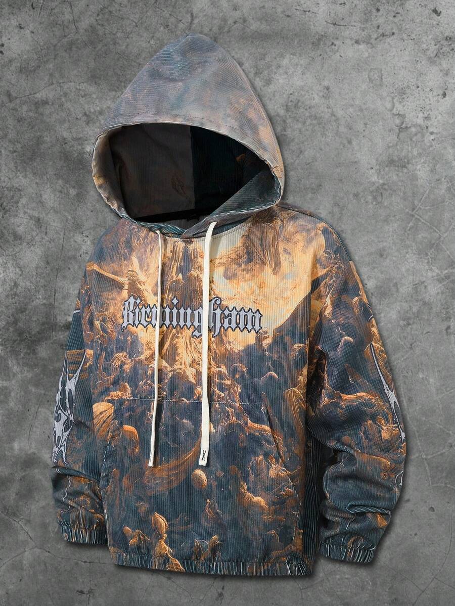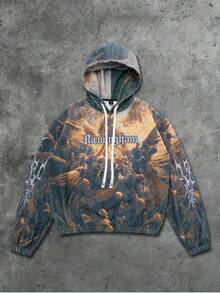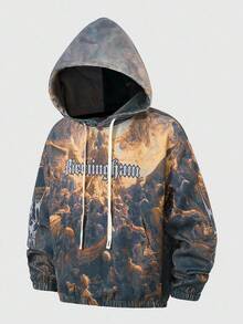 Street Life Felpa con cappuccio da uomo con stampa grafica di murales di strada americani, Vergine Maria, Gesù, in stile graffiti, autunno