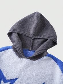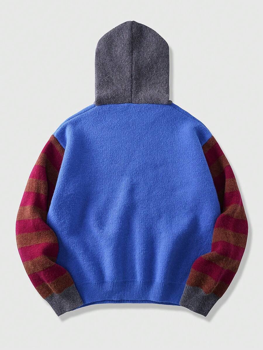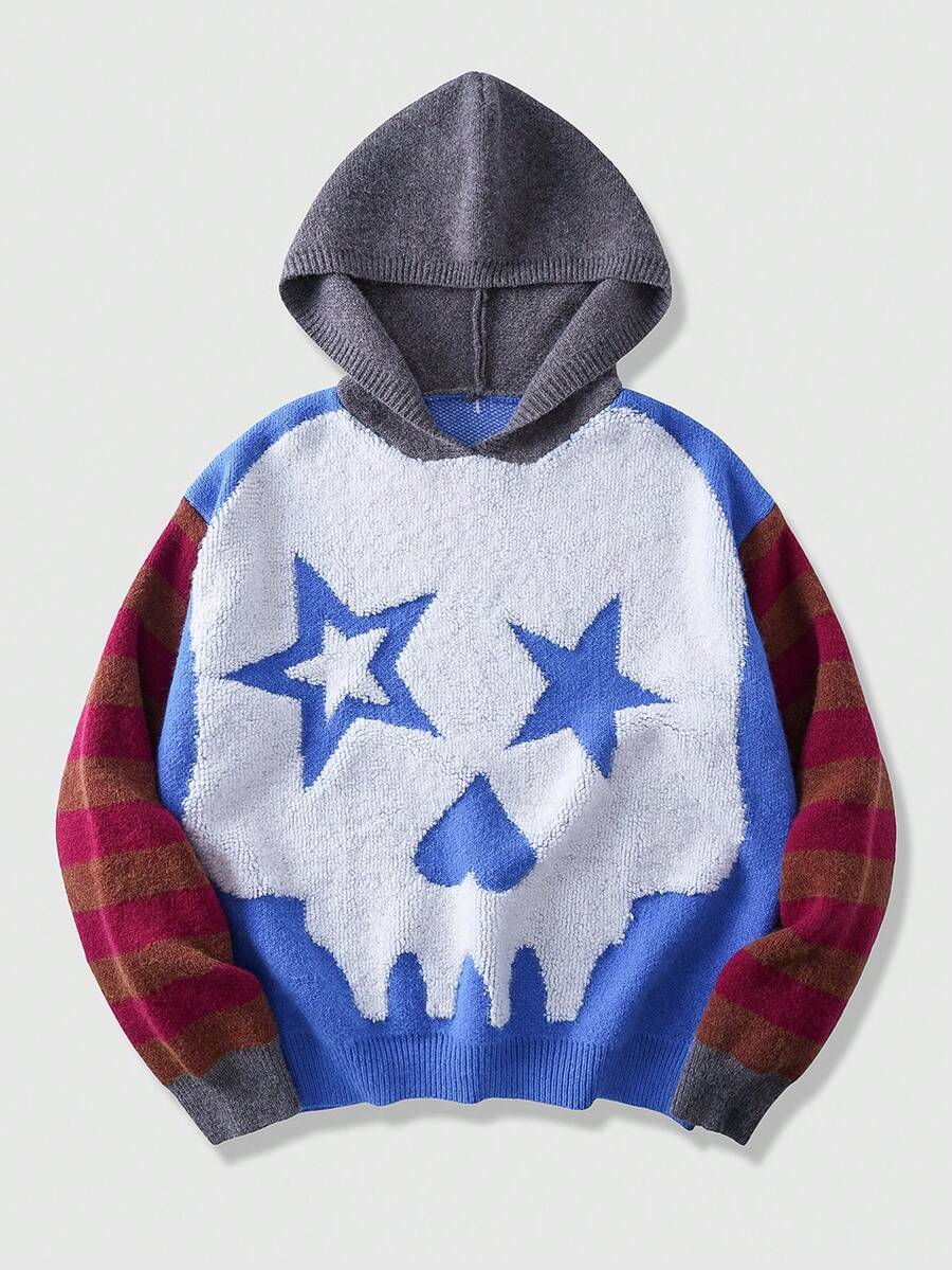 Street Life Maglione a maniche lunghe con vestibilità ampia, in maglia jacquard, con cappuccio, da uomo