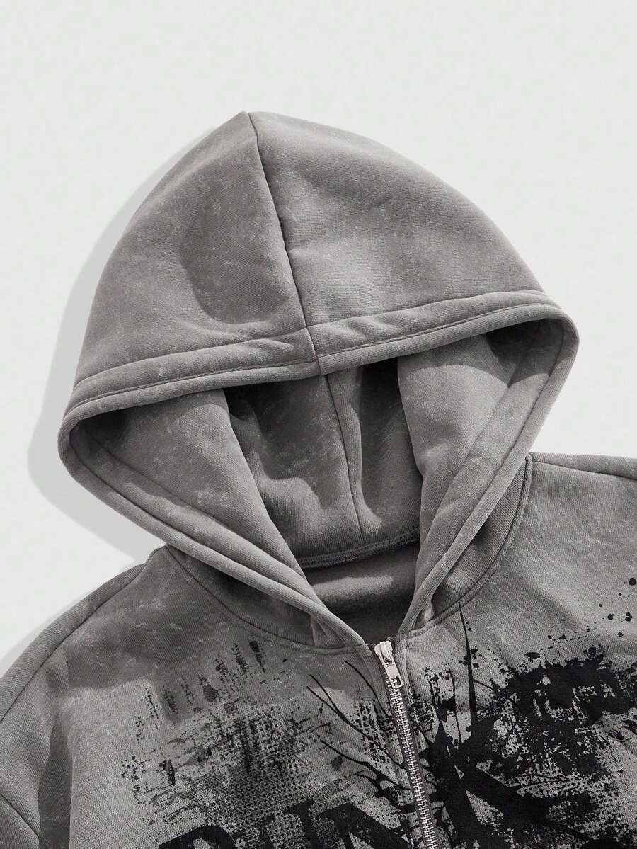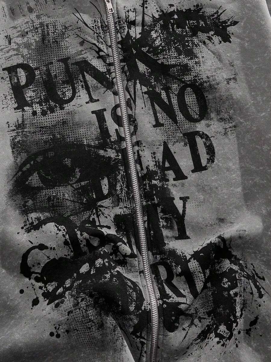 Street Life Felpa con cappuccio e chiusura lampo con stampa di slogan e occhi, per uomo, autunnale e scura