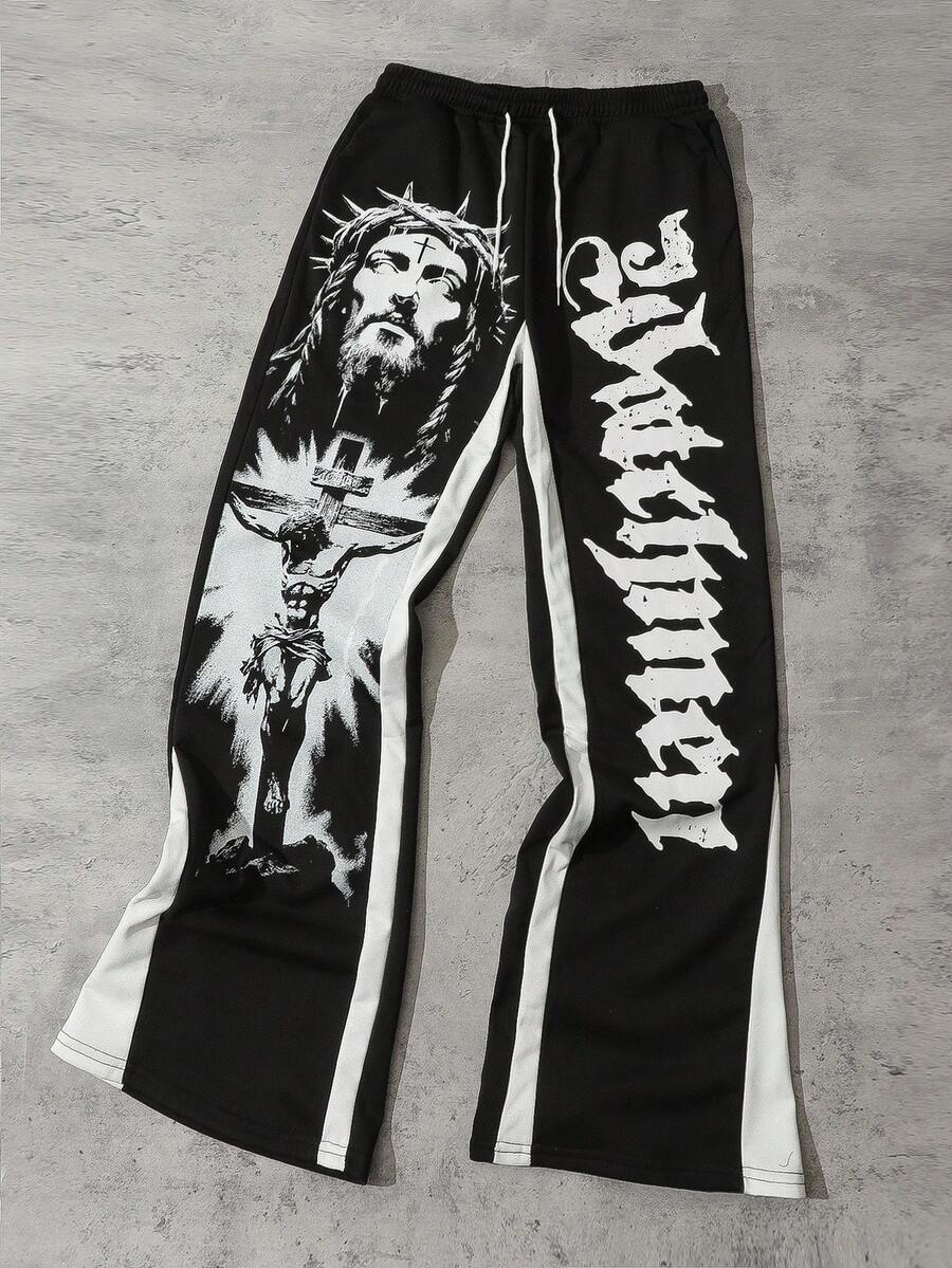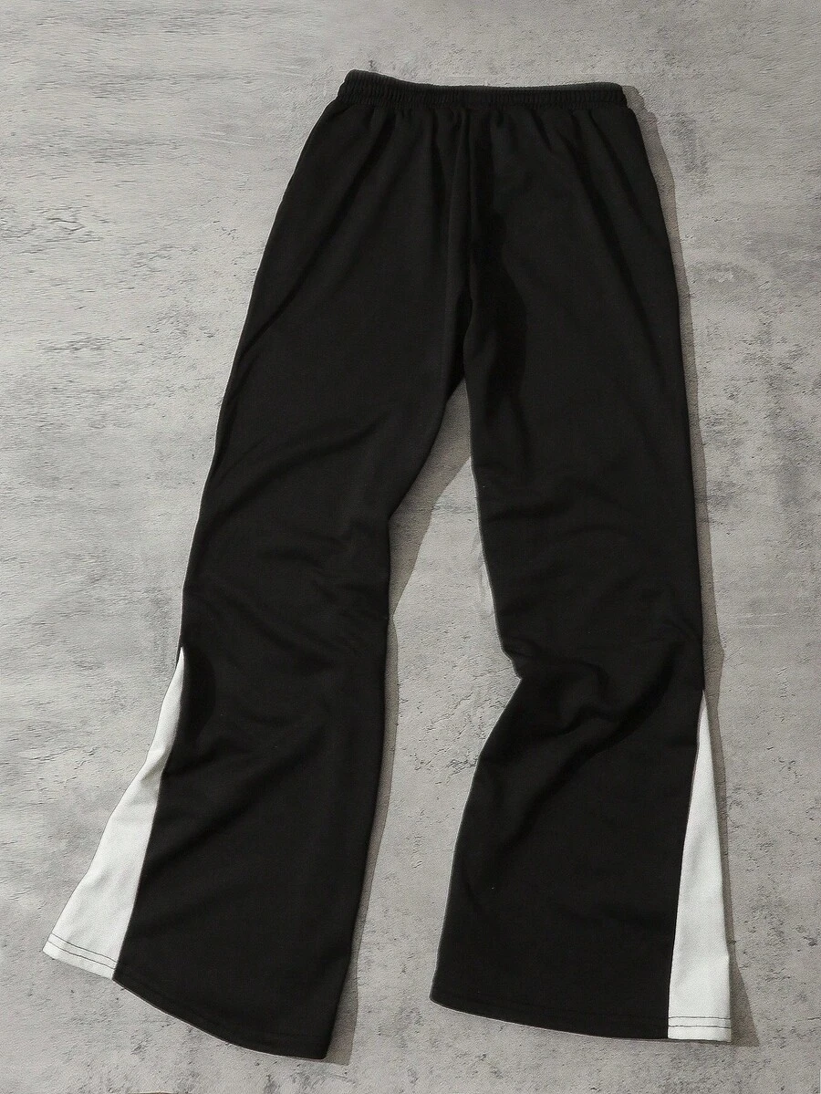 Street Life Pantaloni della tuta a zampa con patchwork a strati, stile di strada retrò per uomo