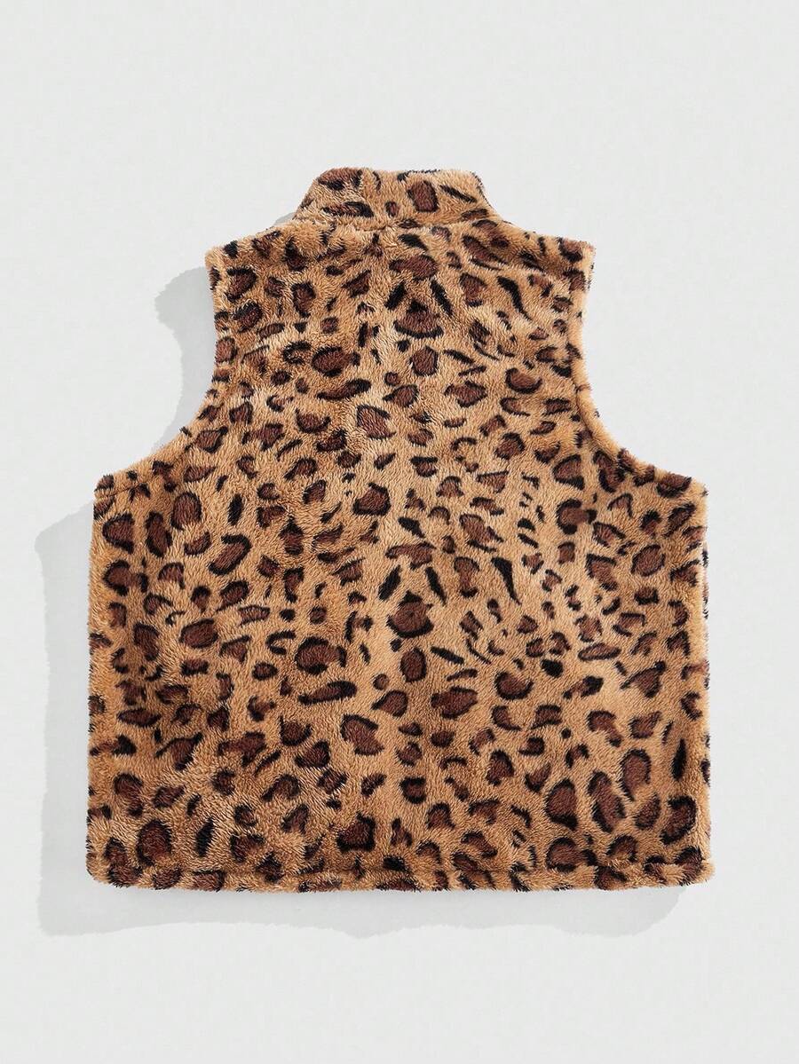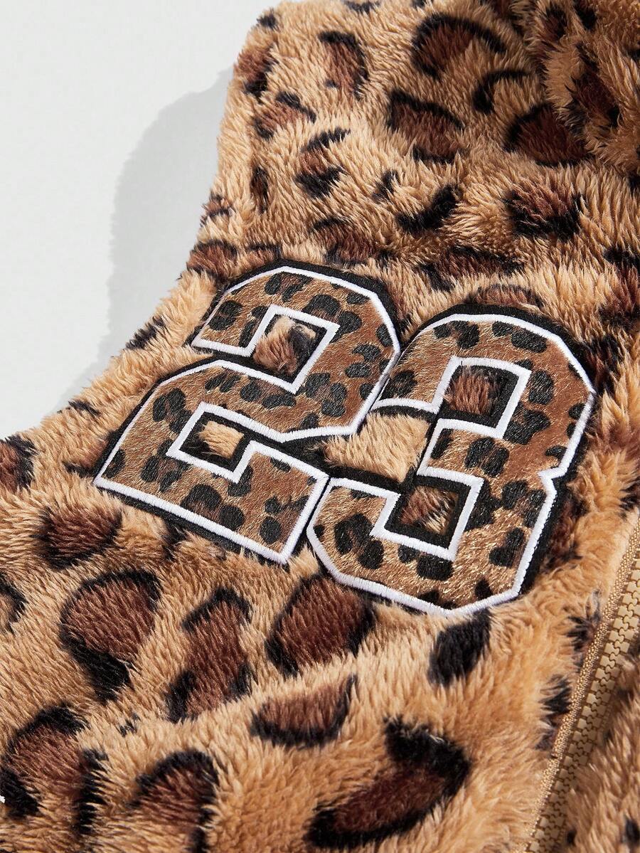 Street Life Gilet da uomo con stampa leopardata e applicazione di numeri, con zip, per autunno e inverno