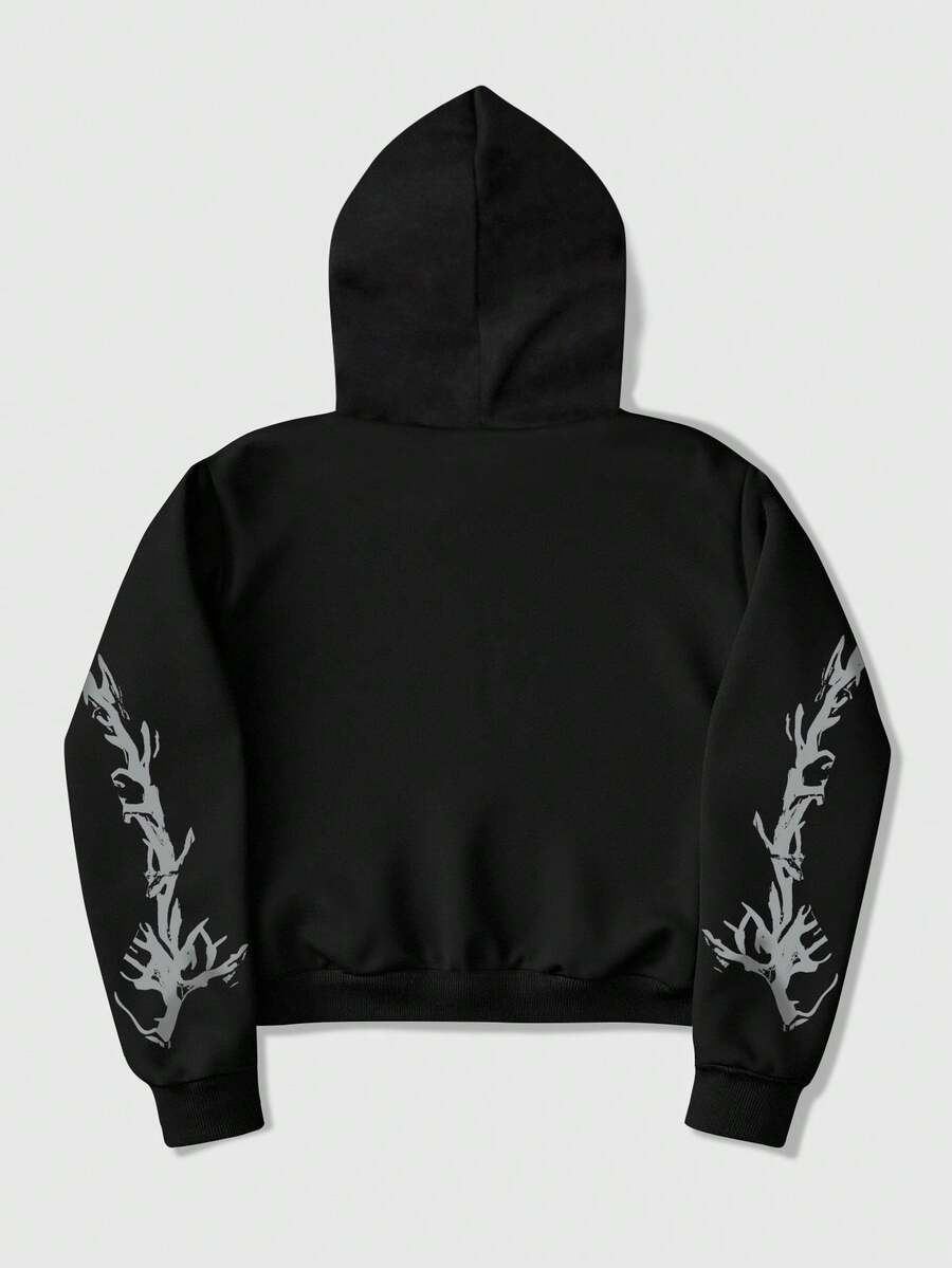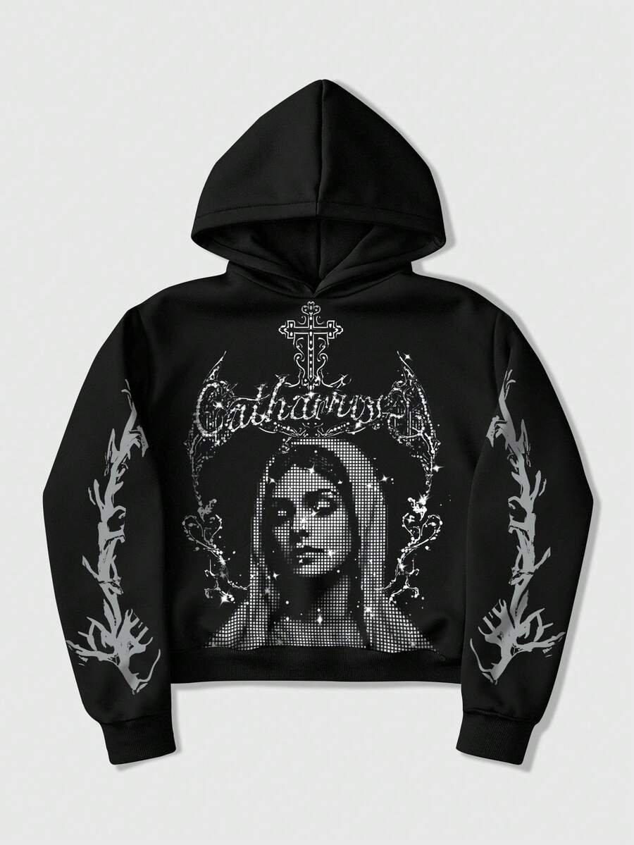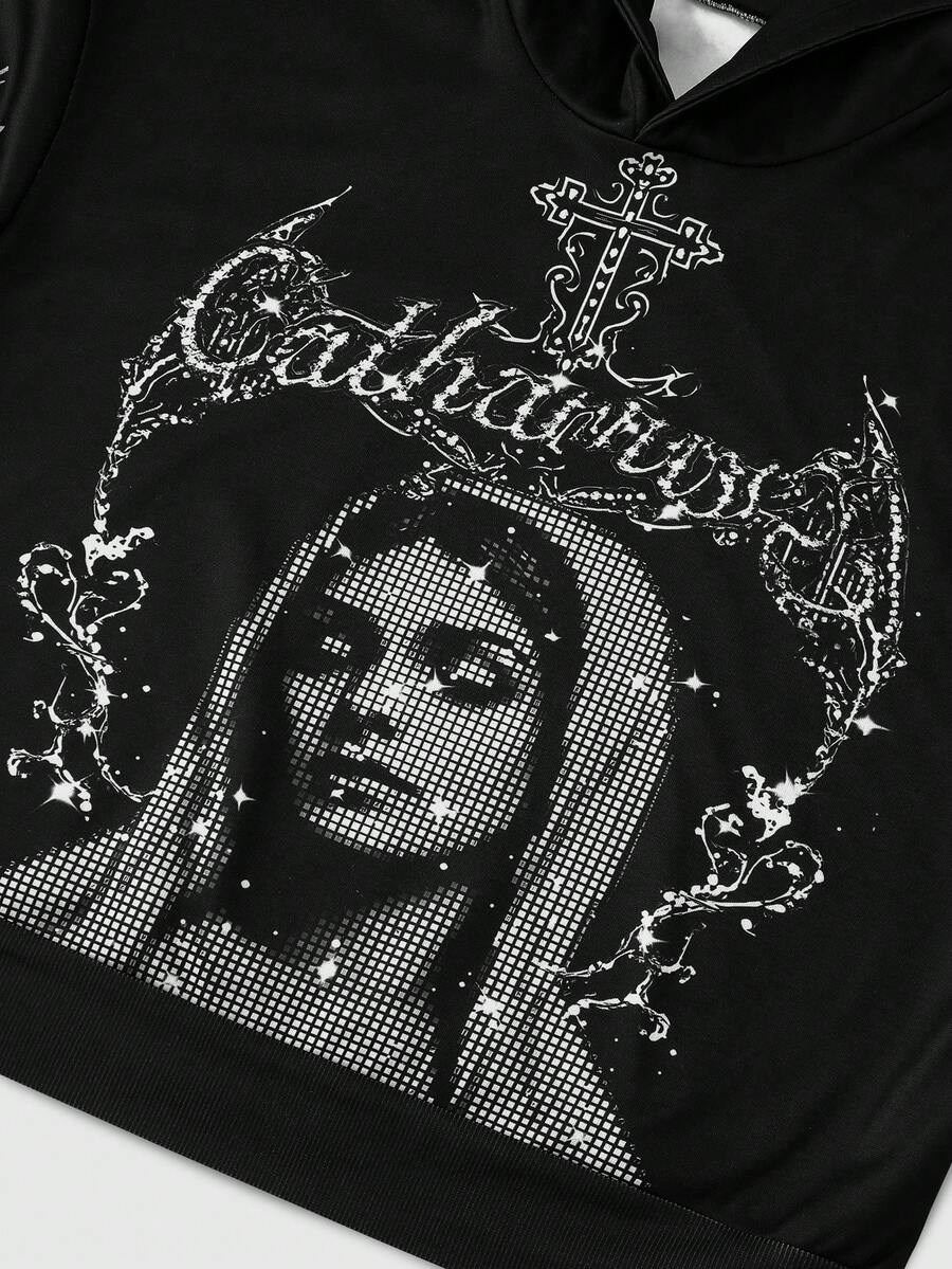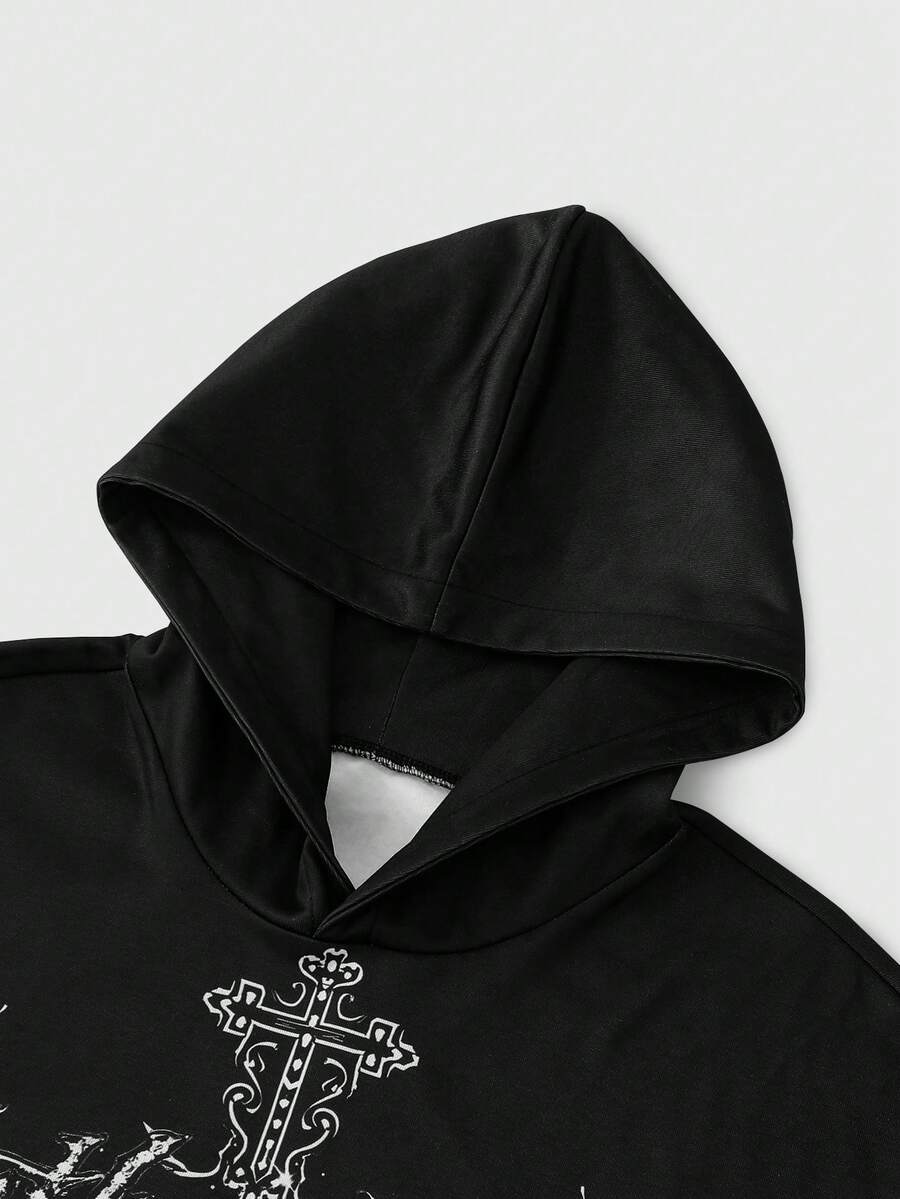 Street Life Felpa con cappuccio casual da uomo con stampa di lettere e croci, manica lunga, autunno/inverno