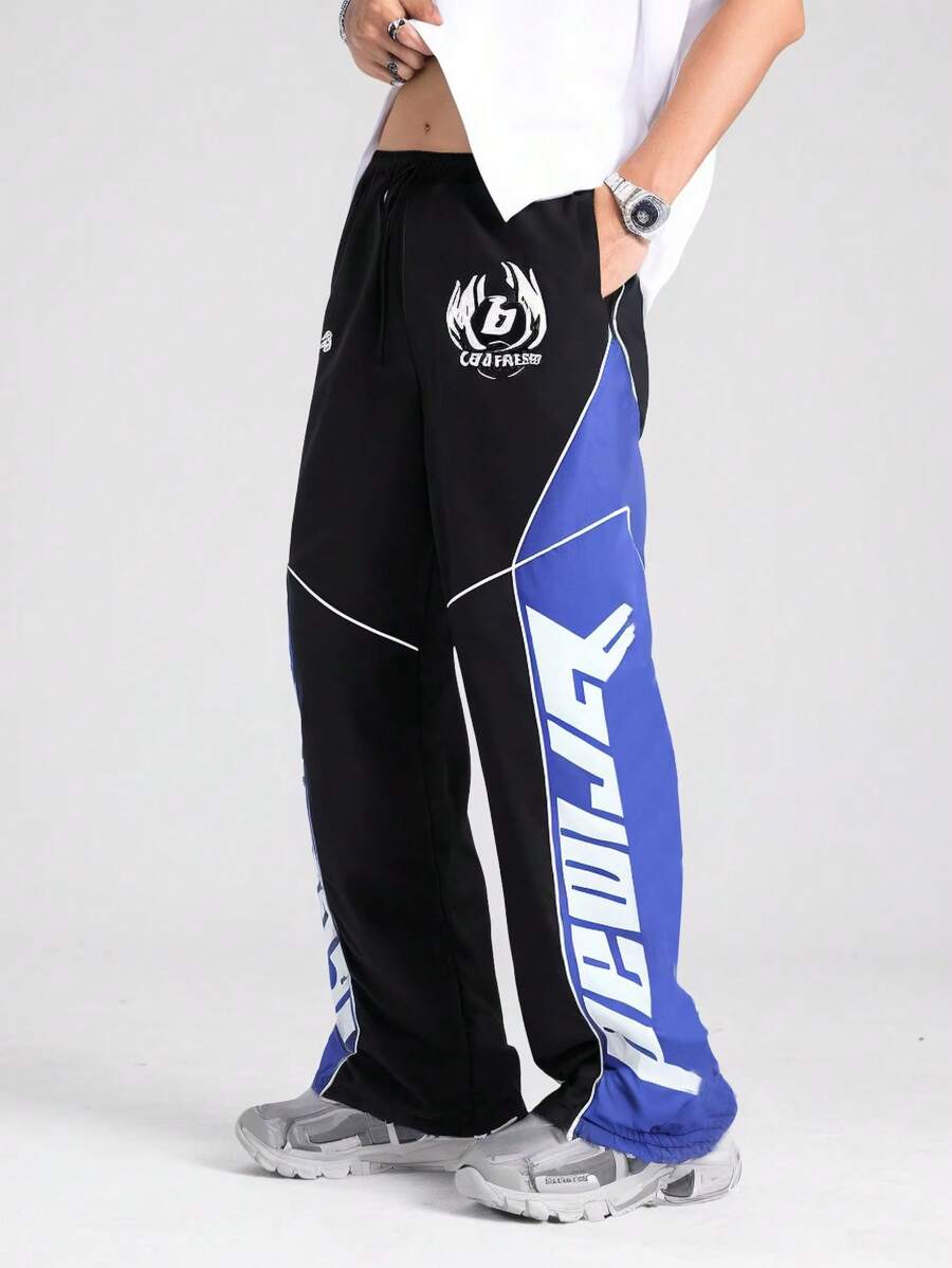 Street Life Pantaloni larghi da uomo con vita con coulisse e stampa a lettera