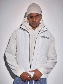 Street Life Gilet casual bianco con stampa di lettere e chiusura lampo davanti per uomo