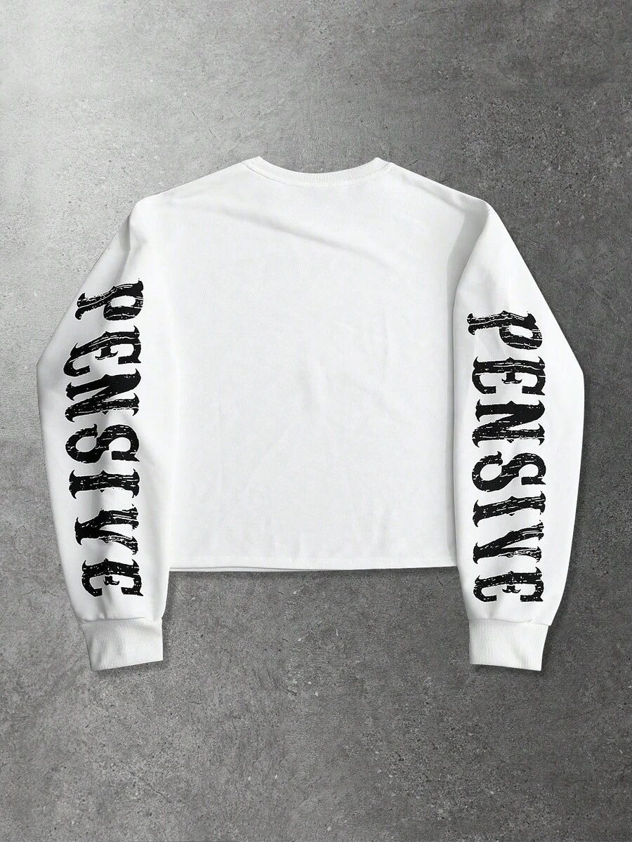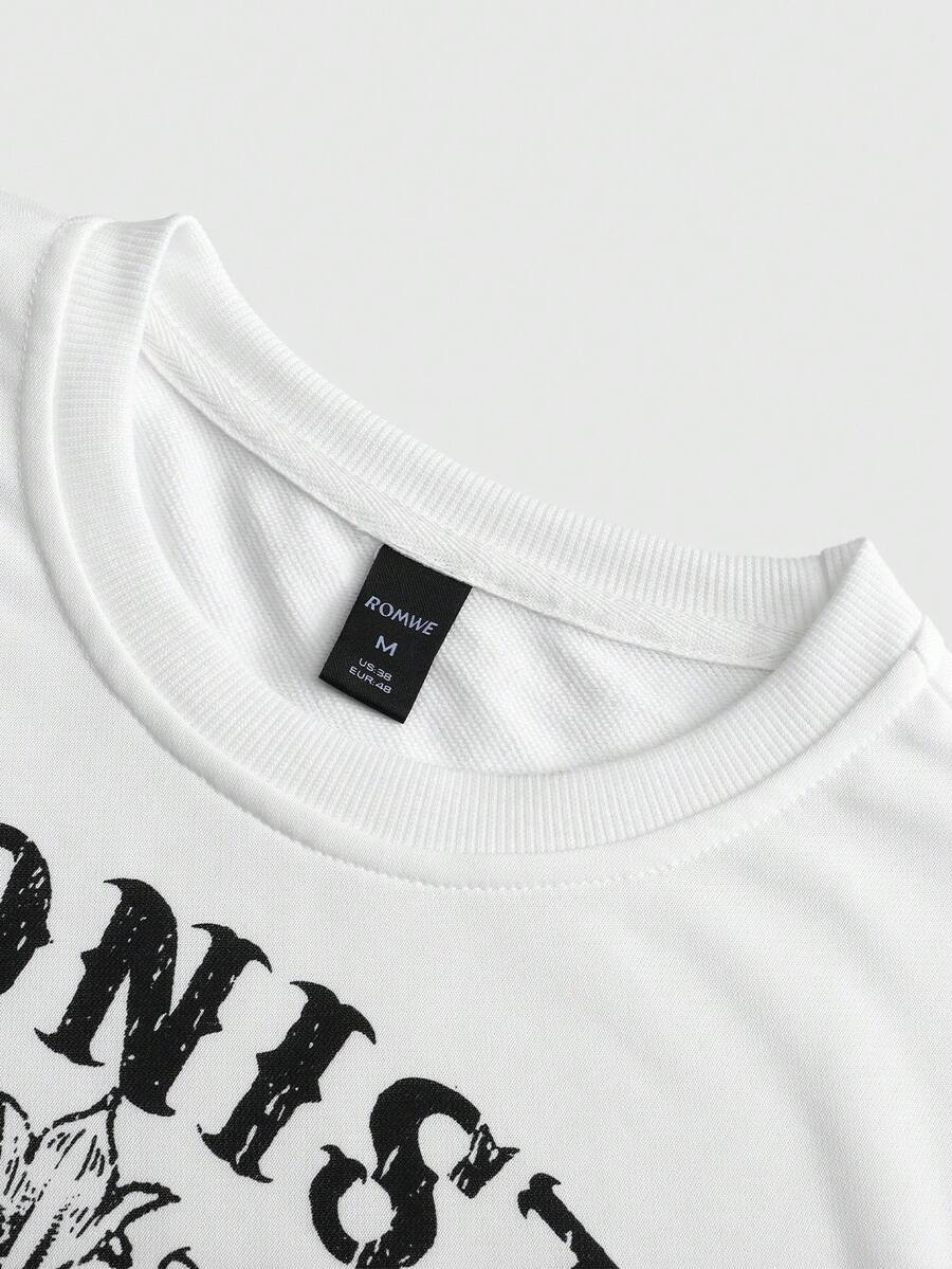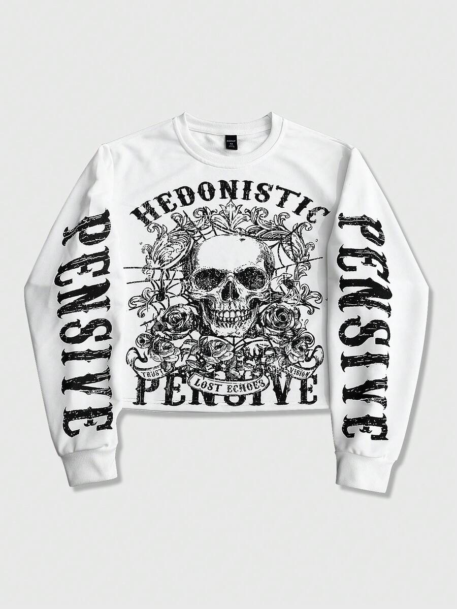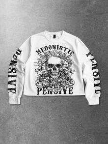 Street Life Felpa girocollo casual da uomo con grafica di lettere e teschio, manica lunga