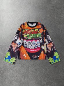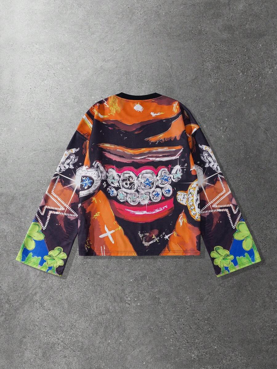 Street Life Maglietta a maniche lunghe da uomo con stampa di denti, stile retrò da strada