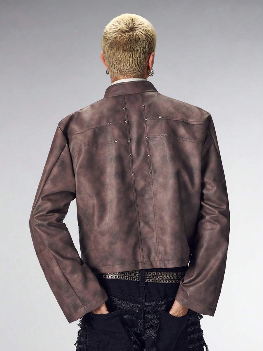 Street Life Giacca in pelle da uomo con chiusura lampo frontale, decorata con grafica a croce, stile punk
