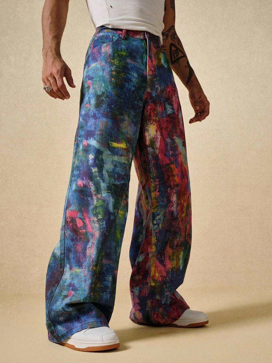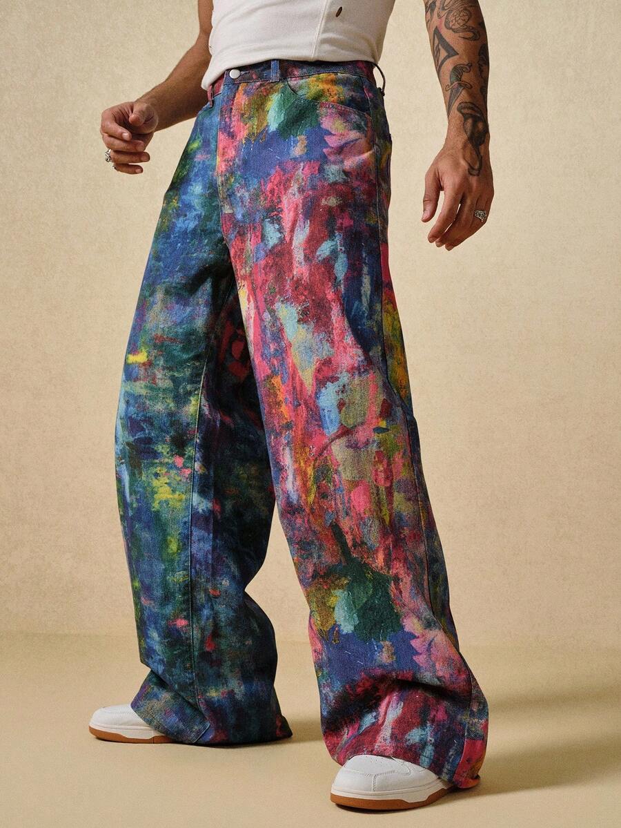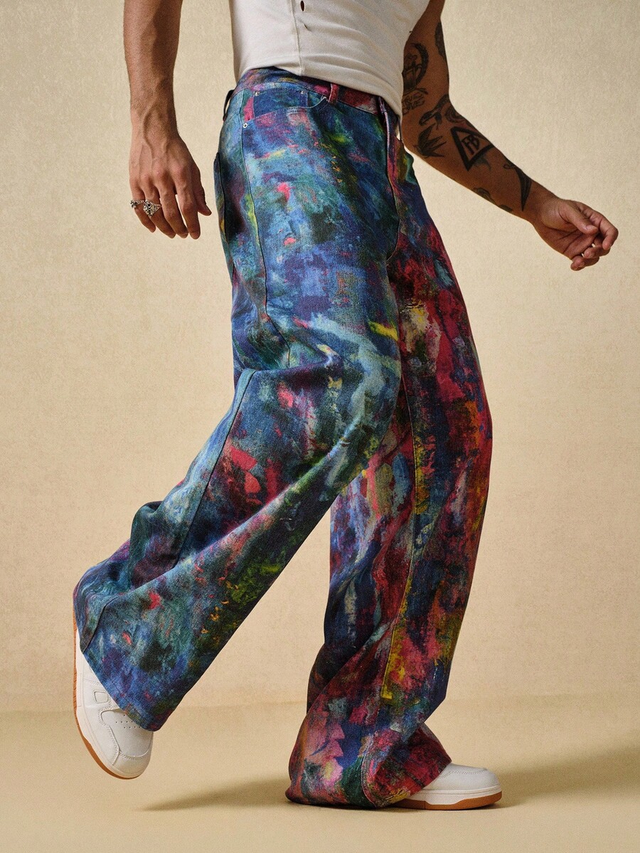Street Life Jeans larghi e morbidi da uomo con motivo dipinto