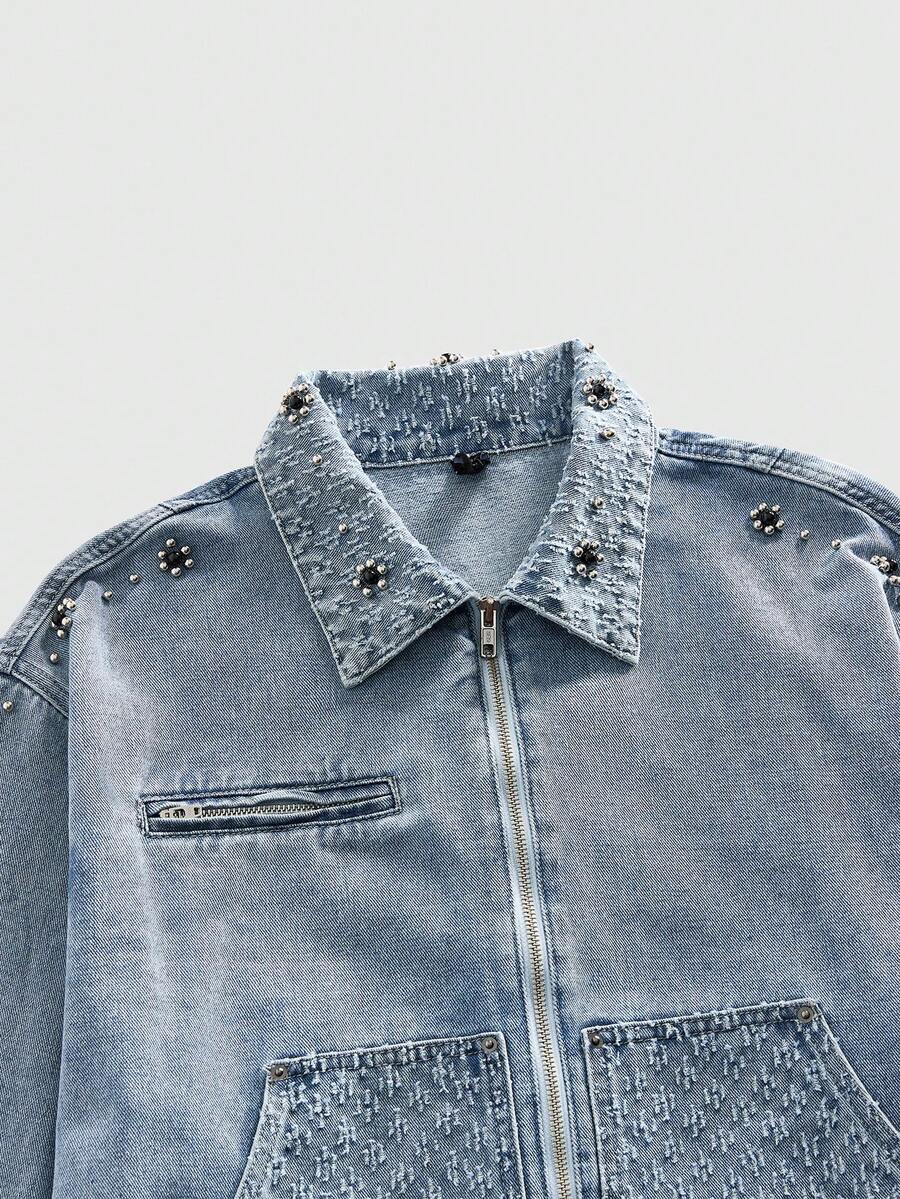 Street Life Giacca di jeans oversize da uomo con decorazioni in perle