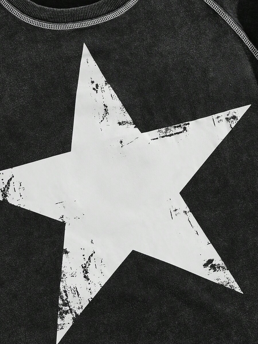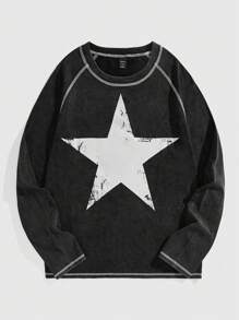 Street Life Maglietta casual a maniche lunghe con stampa a stella a cinque punte, vestibilità ampia, per uomo, primavera ed estate