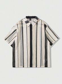 Street Life Camicia a righe a maniche corte e morbida a maglia oversize da uomo