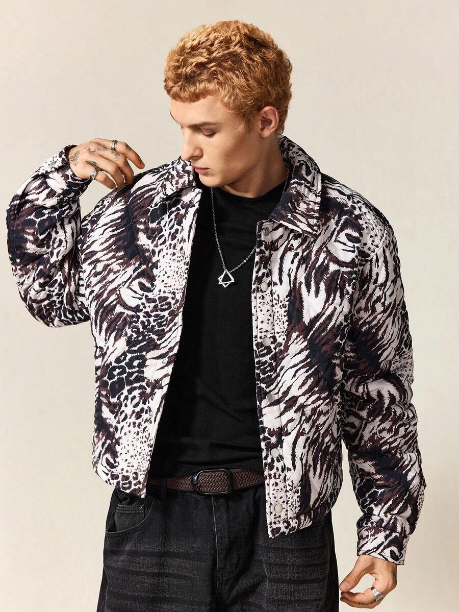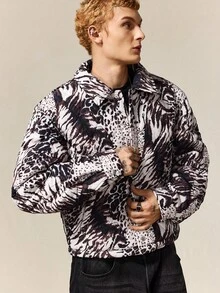 Street Life Giacca casual invernale da uomo ampia con stampa leopardata a maniche lunghe