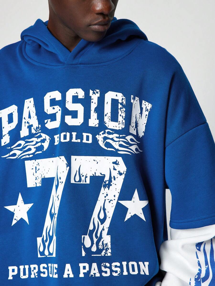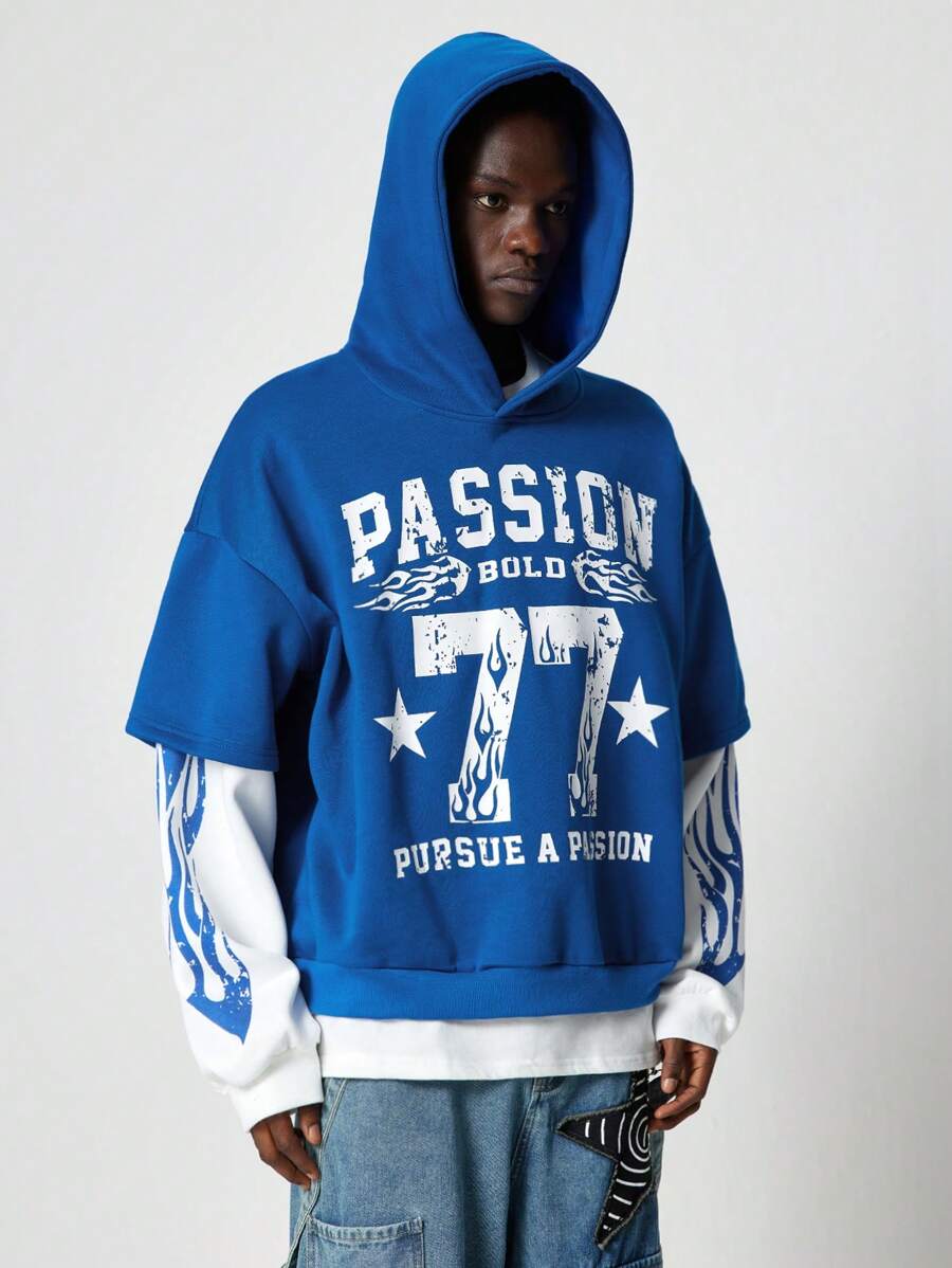 Street Life Felpa con cappuccio da uomo, stile corto loose, 2 in 1, stile urban