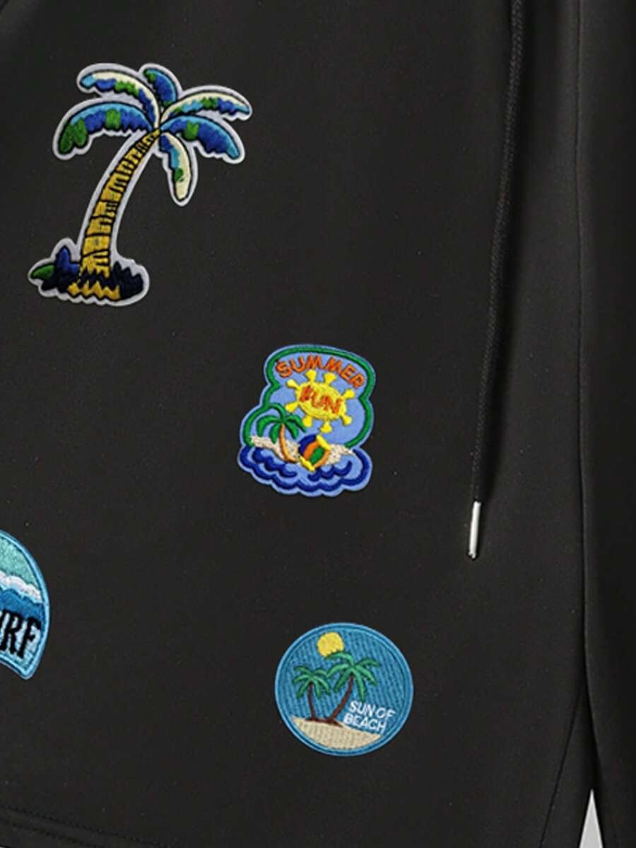 Casual Pantaloncini da uomo con stampa palme, con vita con lacci e tasche
