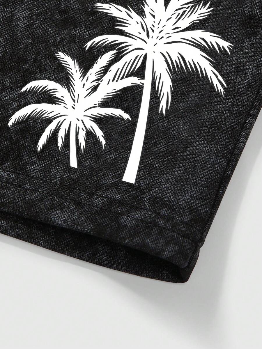 Street Life Short casual con stampa di palme e cintura con cordino per uomo, con stampa di lettere, alla moda e versatile