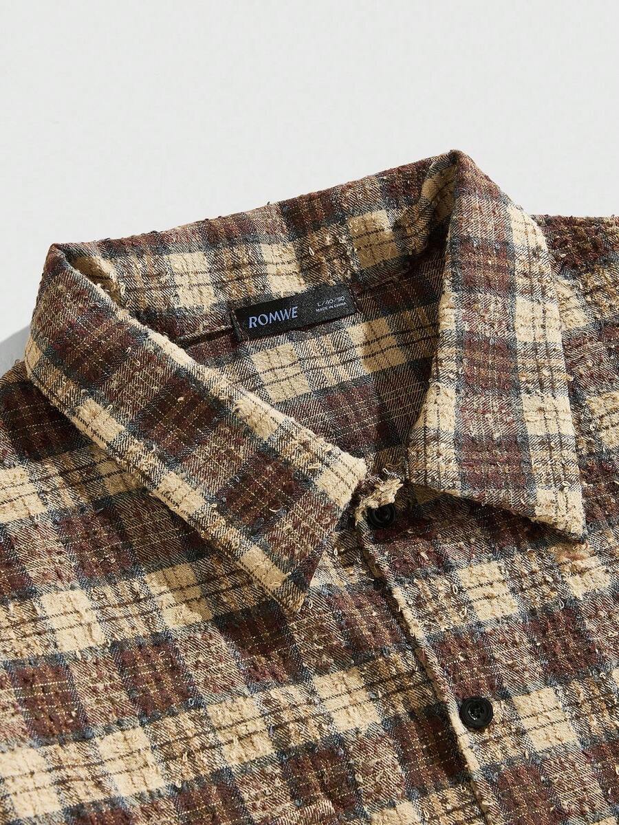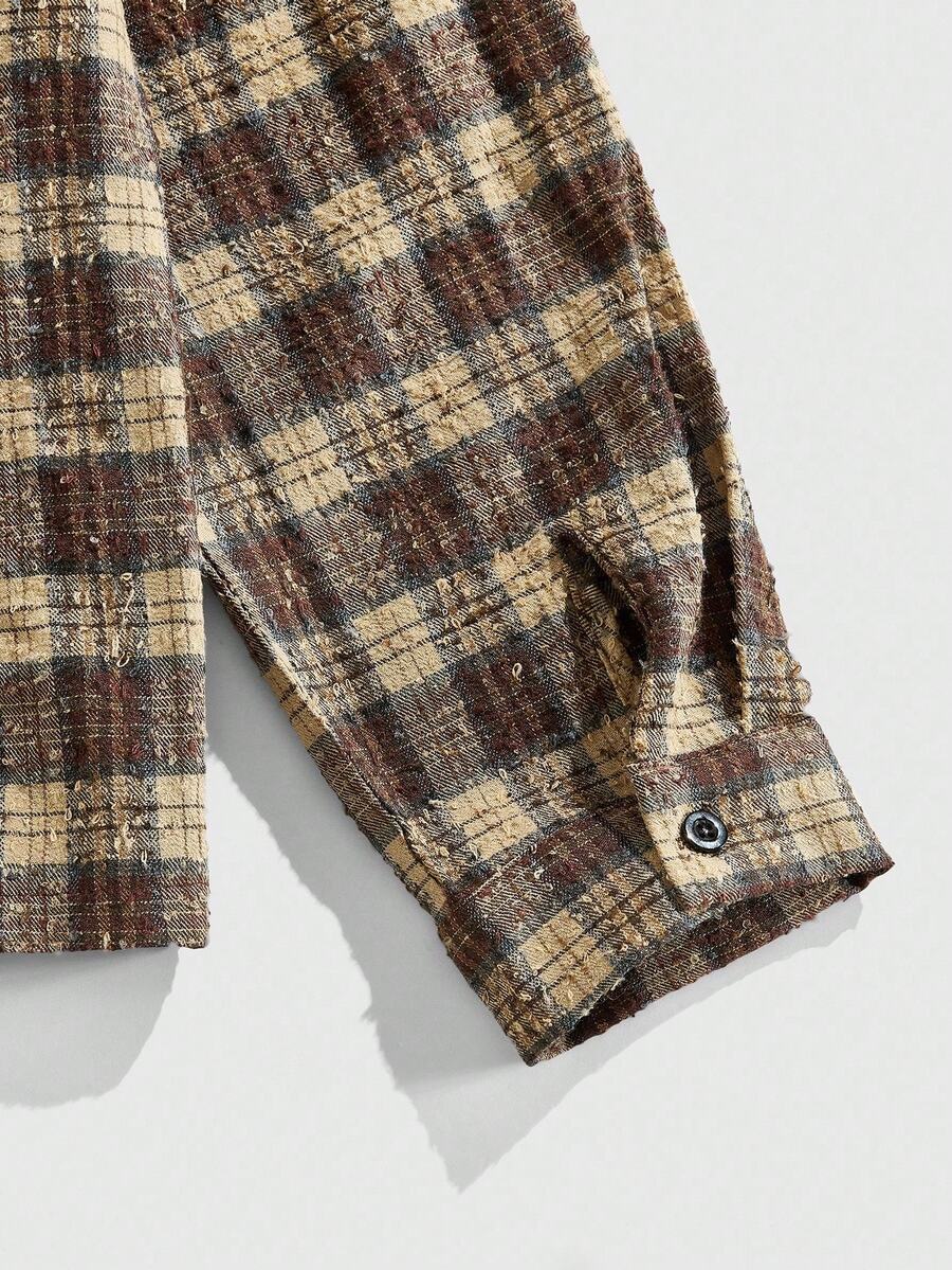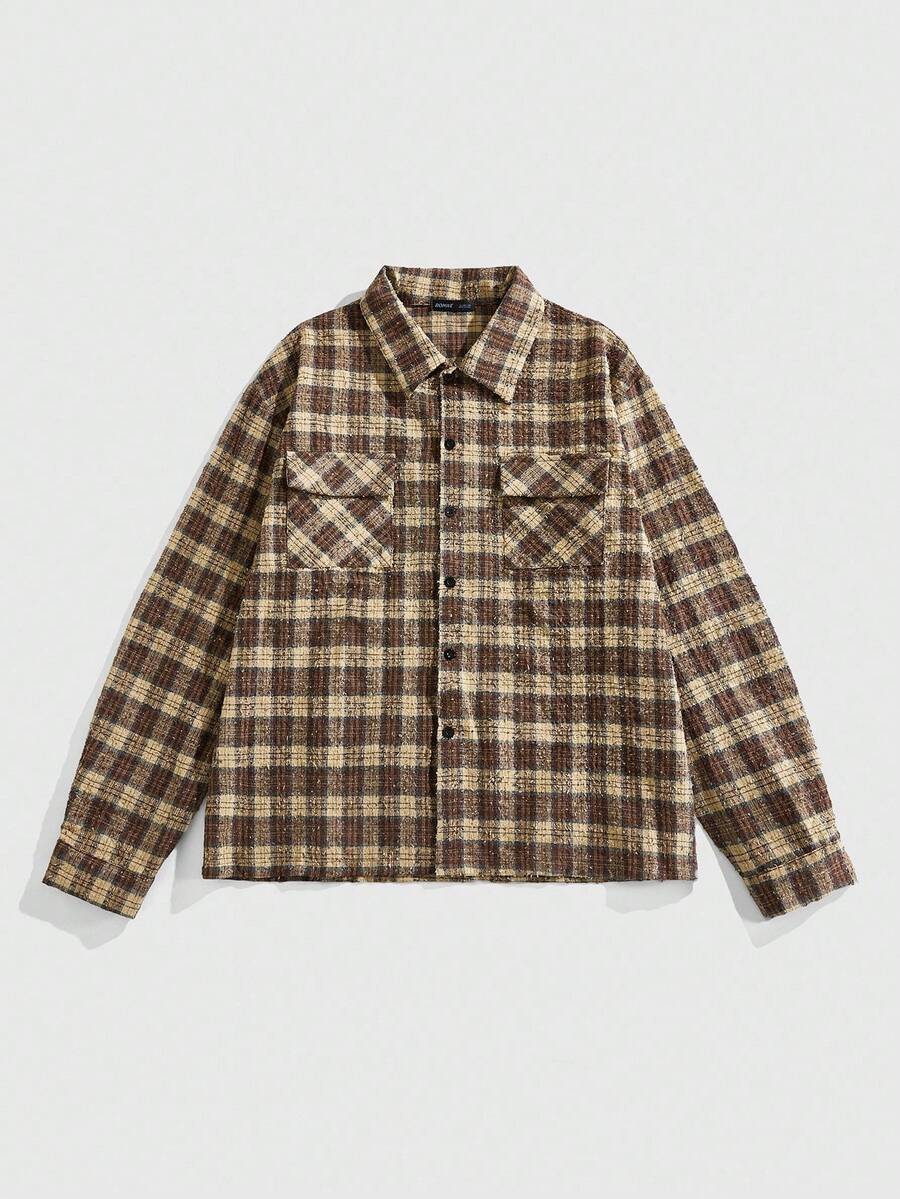Street Life Camicia casual a maniche lunghe a quadri da uomo, stile college di strada, adatta per l'autunno/inverno