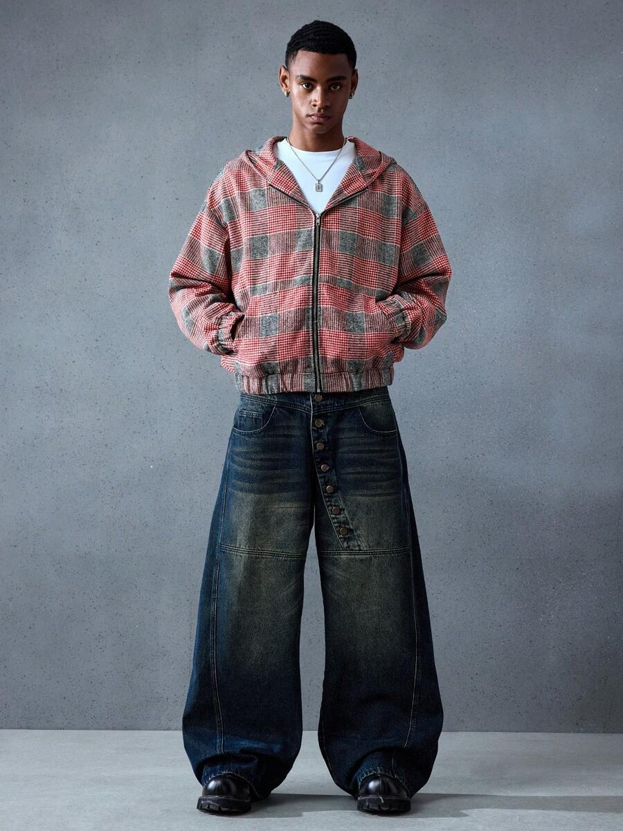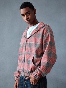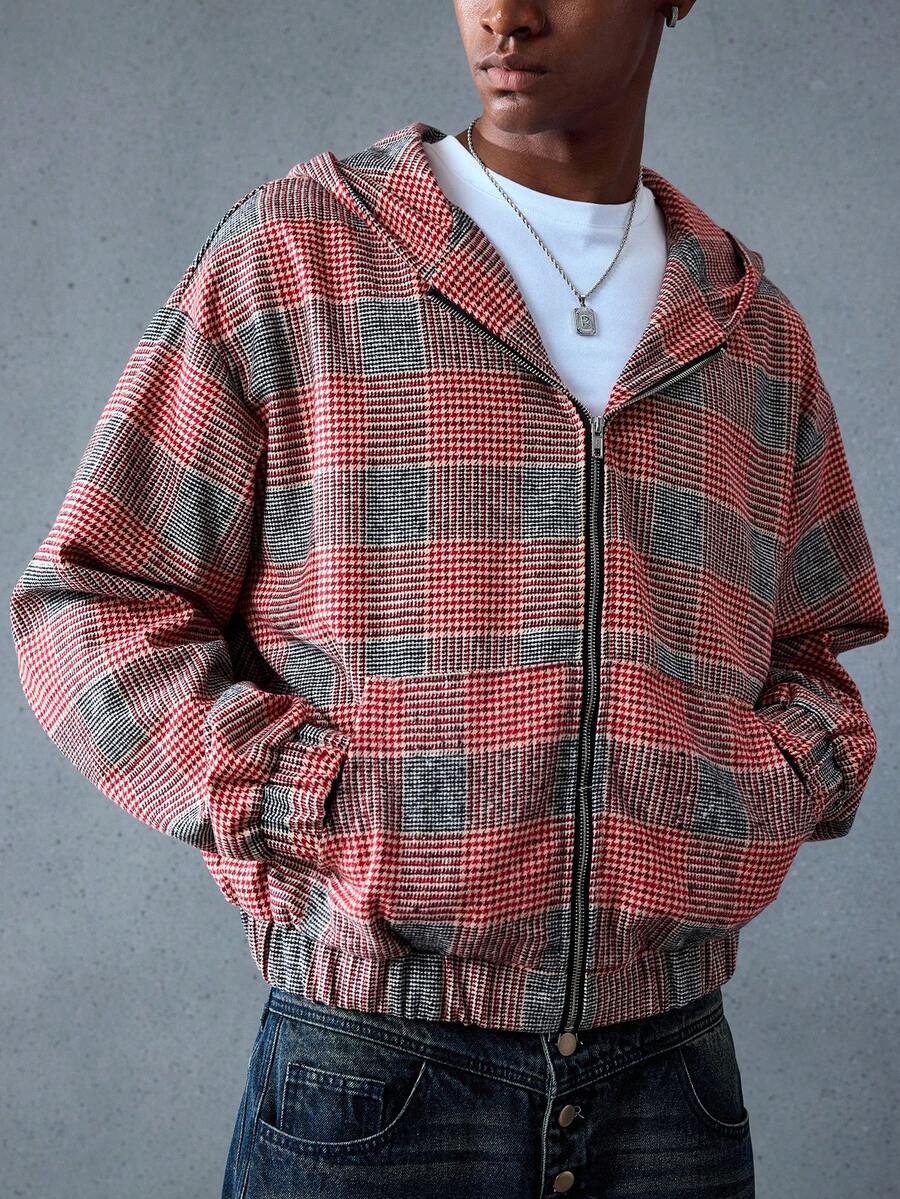Street Life Giacca con cappuccio a quadri da uomo, stile oversize corto, autunno/inverno