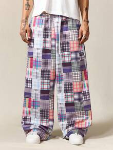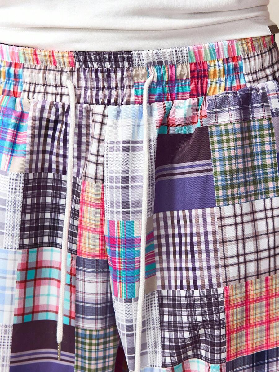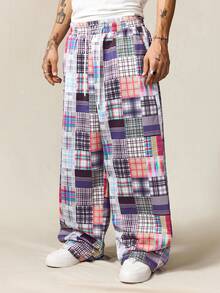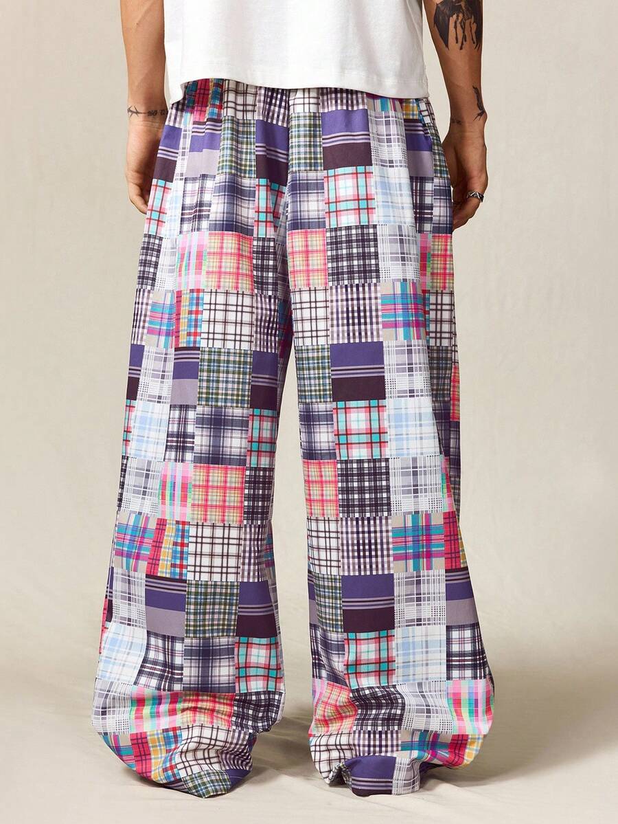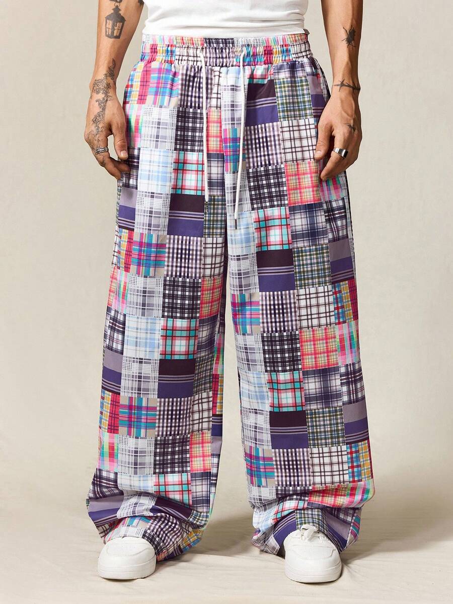 Street Life Pantaloni casual da uomo con motivo a quadri e patchwork, minimalista per uso quotidiano, autunnale