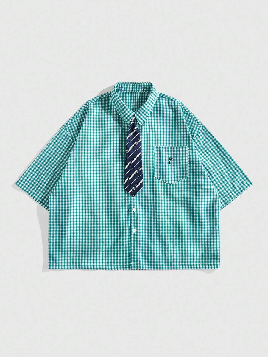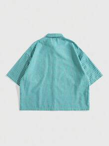 Street Life Camicia casual da uomo a manica corta con taschino, a quadri e monopetto
