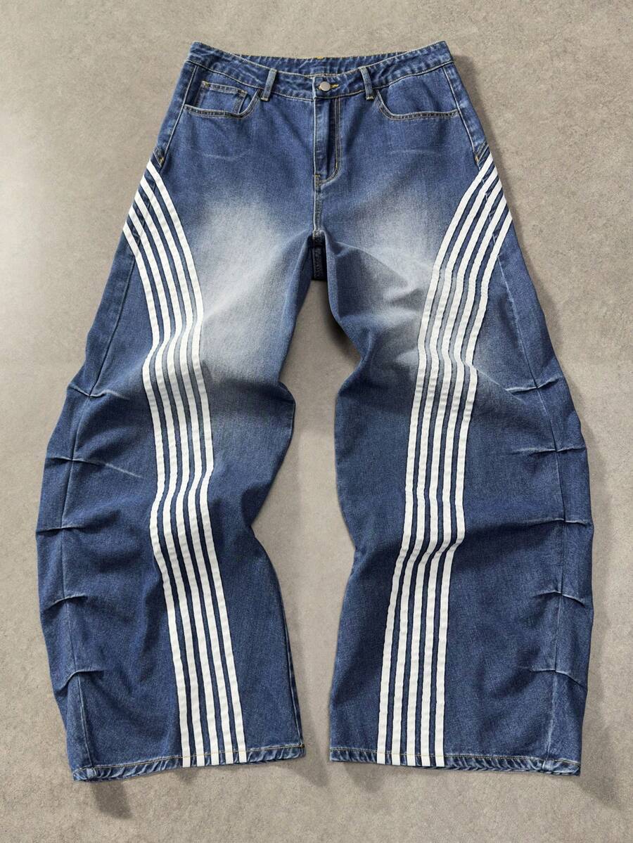 Street Life Jeans casual larghi e comodi con tasche e righe per uomo